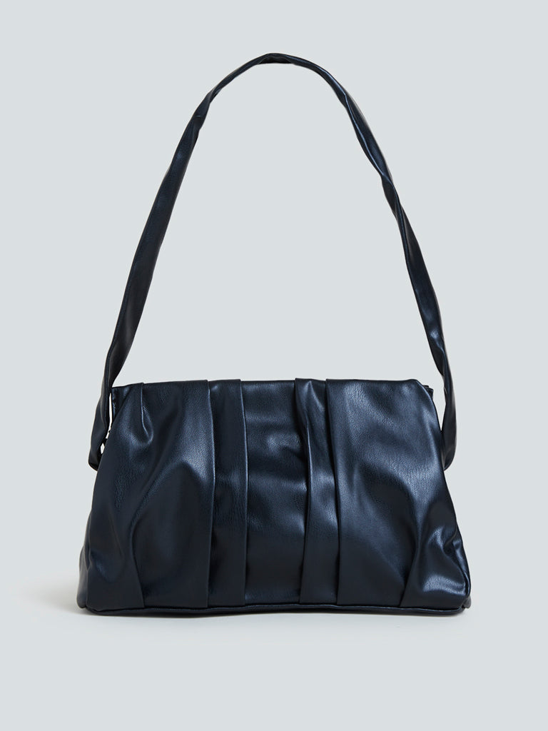 Bringing versatility to your everyday style is this black shoulder bag from LOV. Designed in a faux-leather frame with pleats for modernity. the top-handle design opens to two compartments with interior pockets for easy organisation