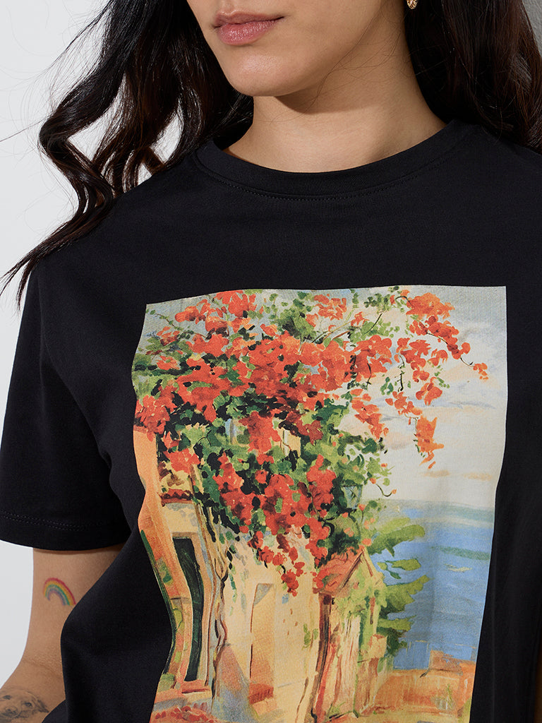Be the first to review “LOV Black Scenic Printed Cotton T-Shirt”