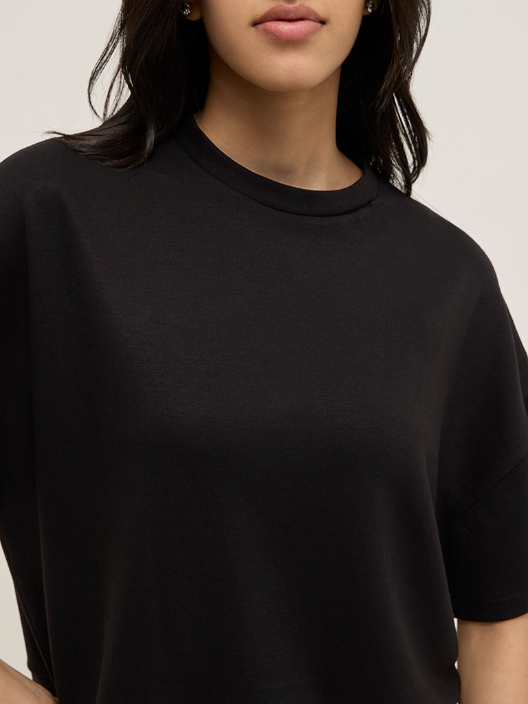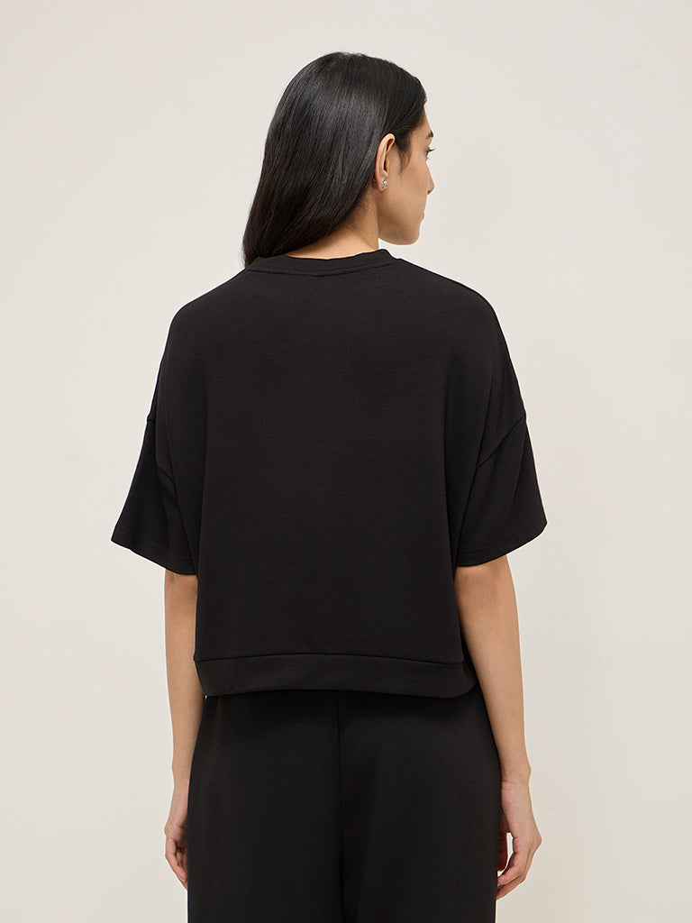 LOV presents this black solid t-shirt in a soft and breathable fabric build. It is structured with a round neck and half sleeves.