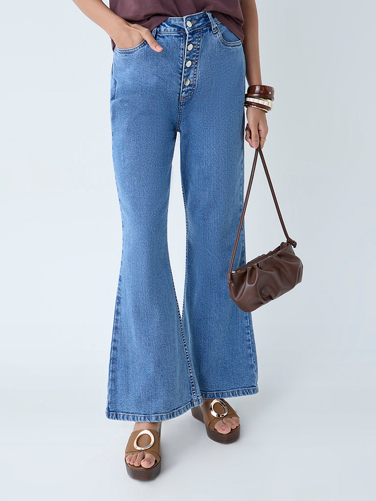 These blue bootcut jeans from LOV offer a refined take on everyday denim. Crafted from a soft cotton-blend fabric. they’re designed with a buttoned waist. belt loops. and a zip fly for a secure fit. The classic five-pocket construction completes the look.