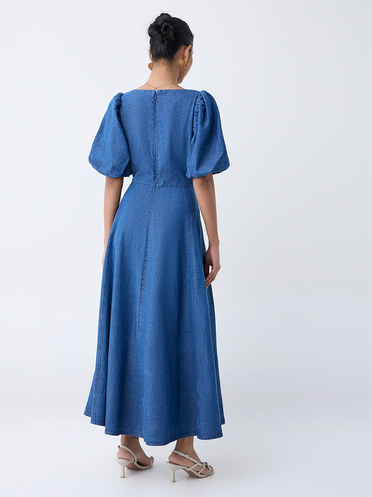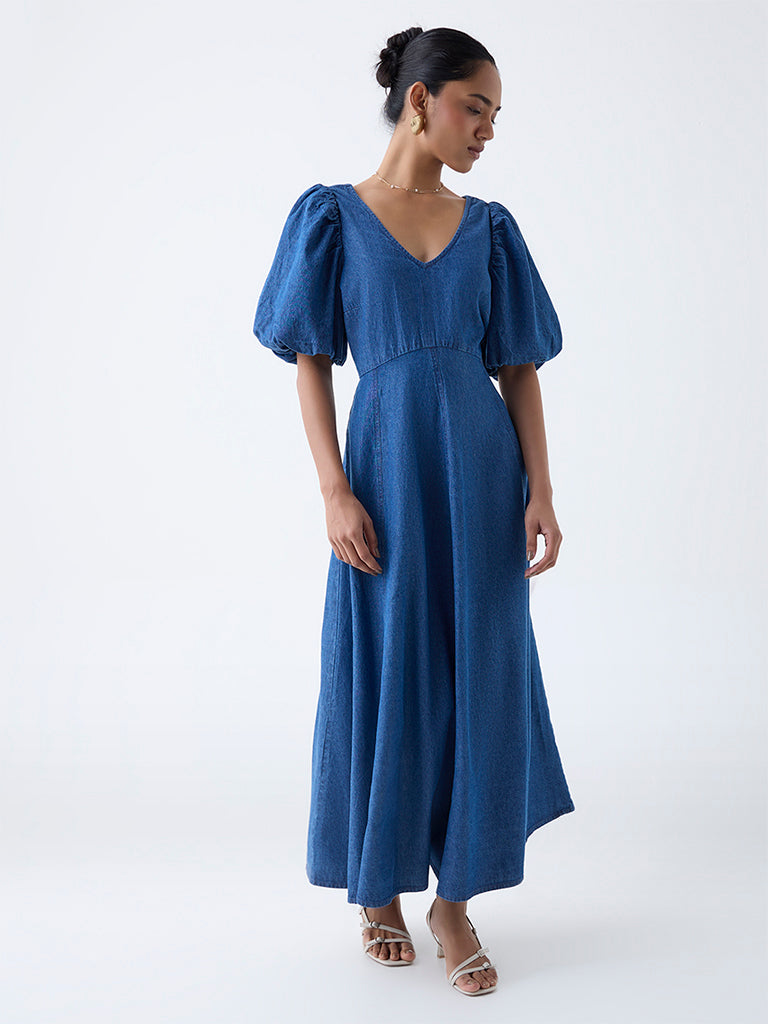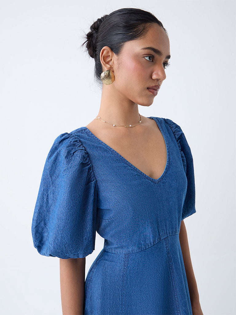 Let summer unfold in effortless style with this blue denim dress by LOV. The fit-and-flare silhouette offers graceful movement. while a V-neck and puffed sleeves provide a chic finish.
