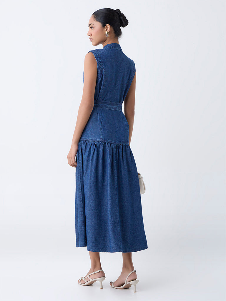 LOV Blue Denim Shirt Dress with Belt