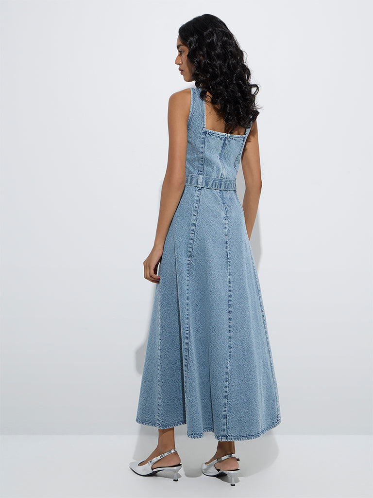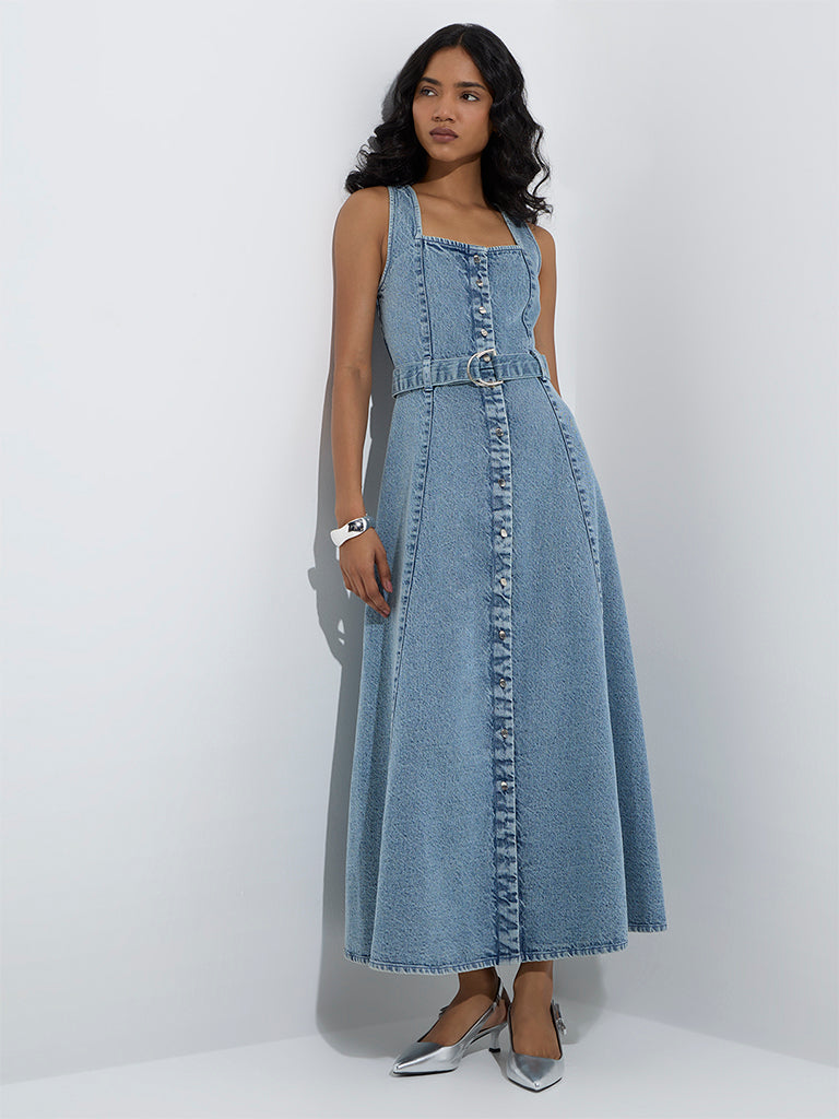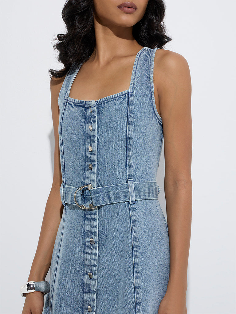 LOV Blue Faded Denim A-Line Dress with Belt