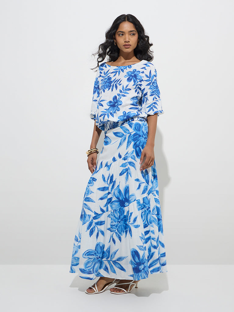 LOV Blue Foliage-Inspired High-Rise Skirt