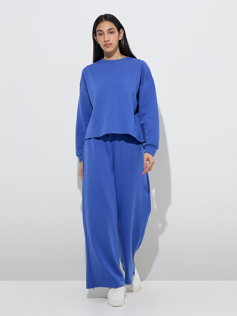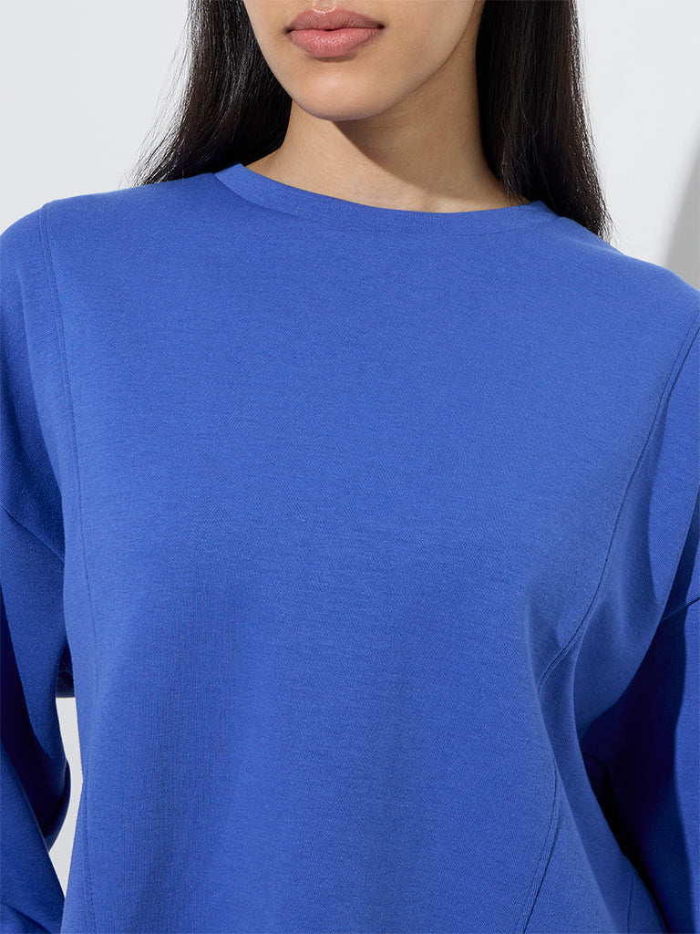 LOV Blue Solid Cotton-Blend Sweatshirt