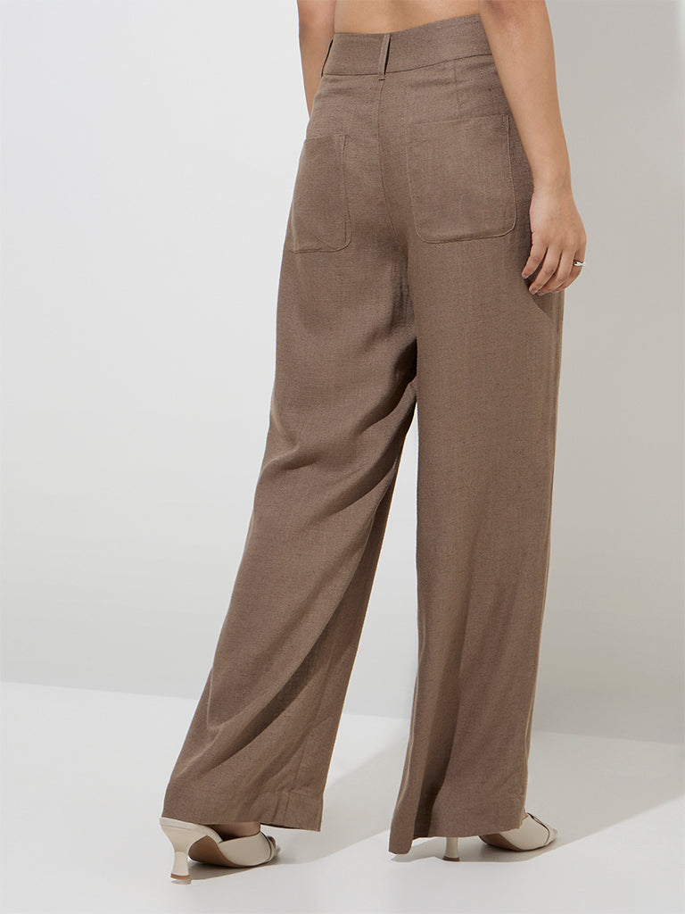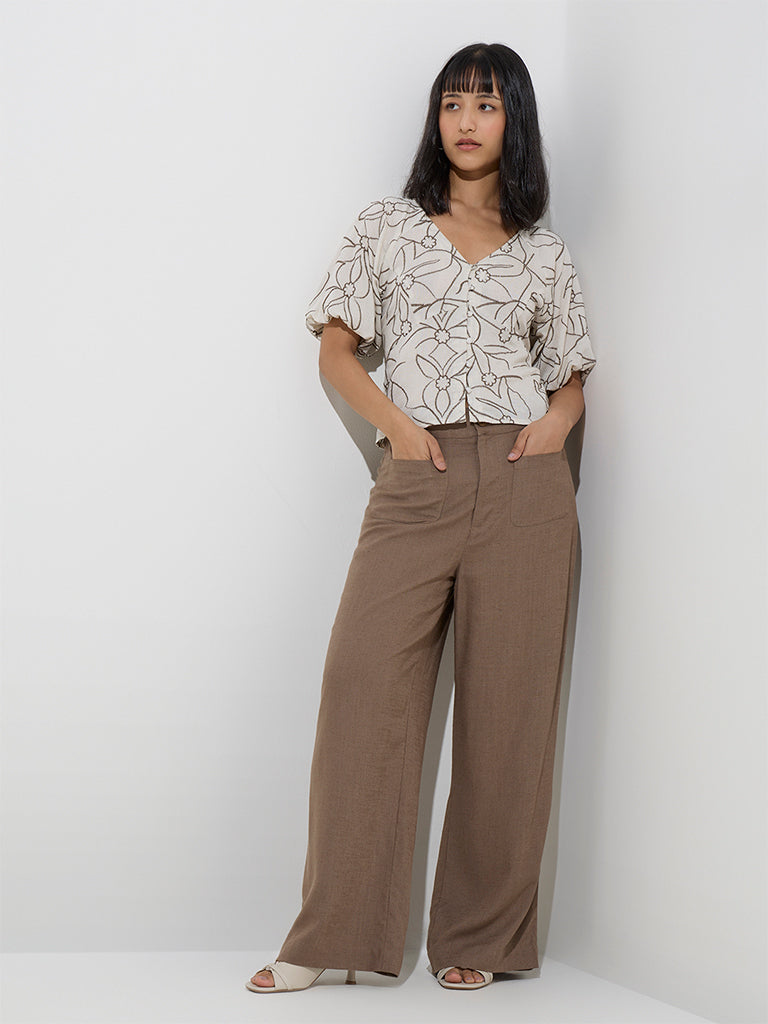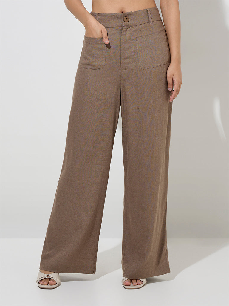 These brown trousers by LOV are woven from a sumptuous linen-blend fabric for luxurious comfort. Designed for effortless style. they feature a buttoned waistband with belt loops and a zip fly. while multiple pockets lend a practical finish.