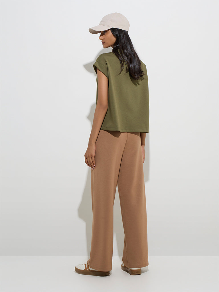Be the first to review “LOV Brown Solid High-Rise Trousers”