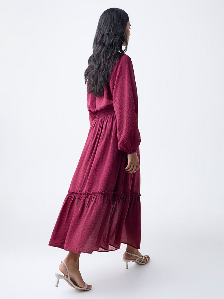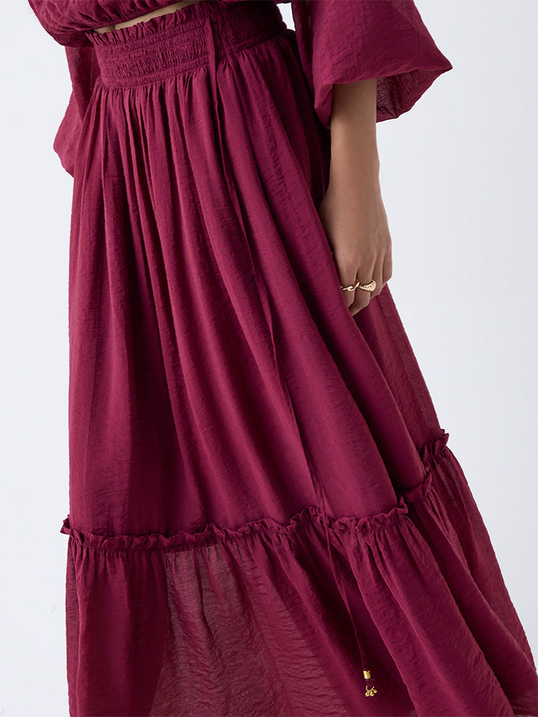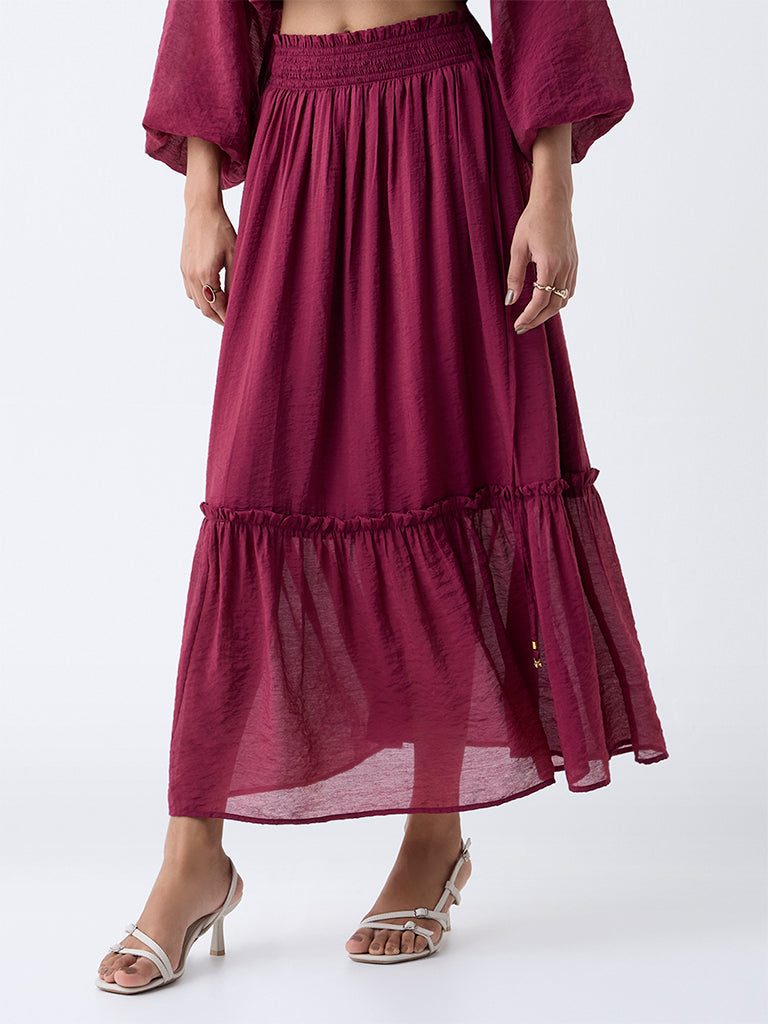 LOV Burgundy Crinkle-Textured High-Rise Skirt