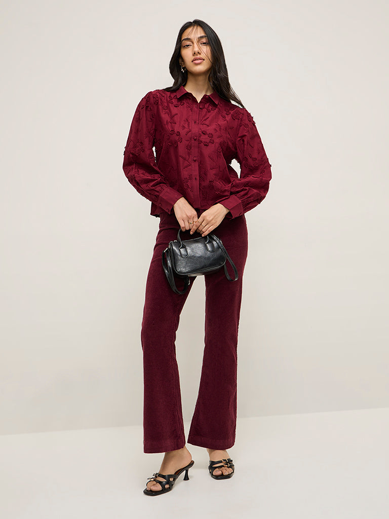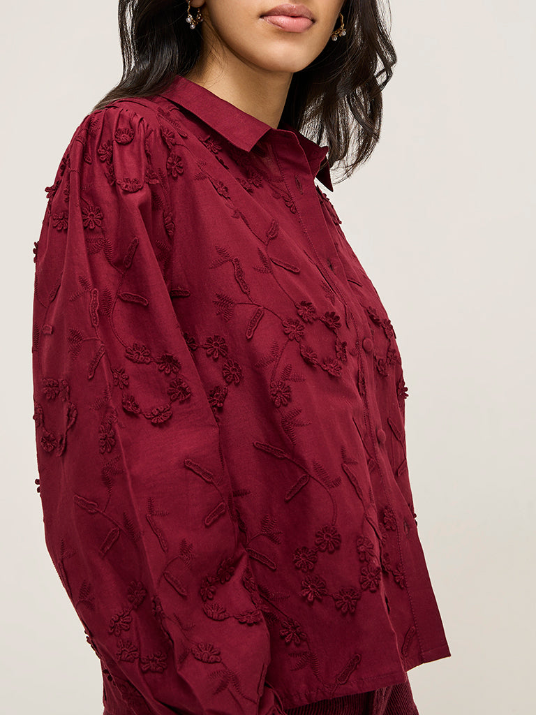 This burgundy shirt from LOV showcases floral appliqu??s throughout. Made from a pure-cotton fabric. it is fitted with a classic collar that extends to a button placket and bishop sleeves.
