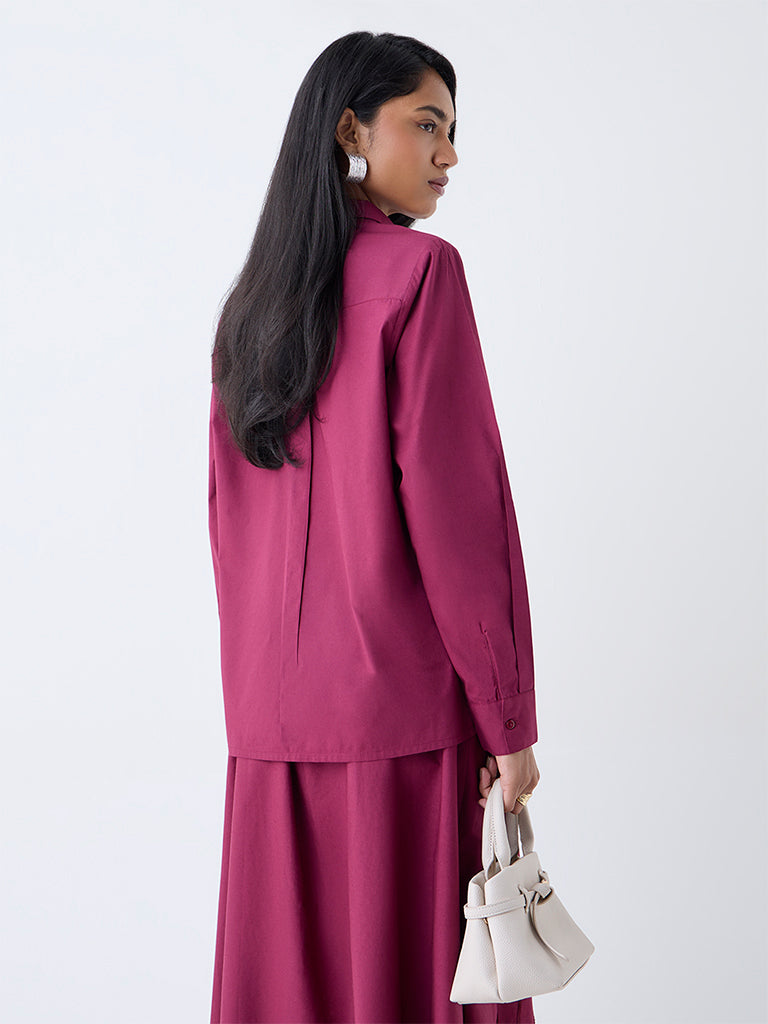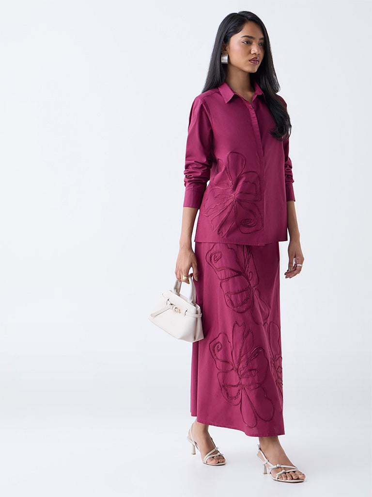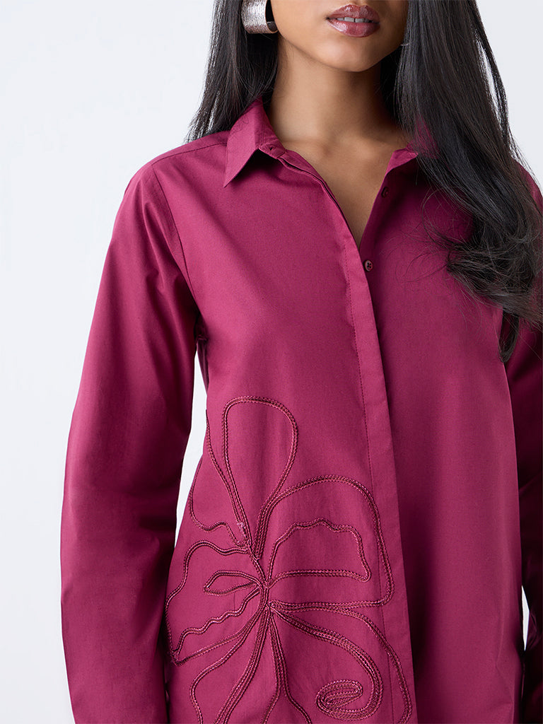 LOV Burgundy Floral Embroidered Cotton Shirt