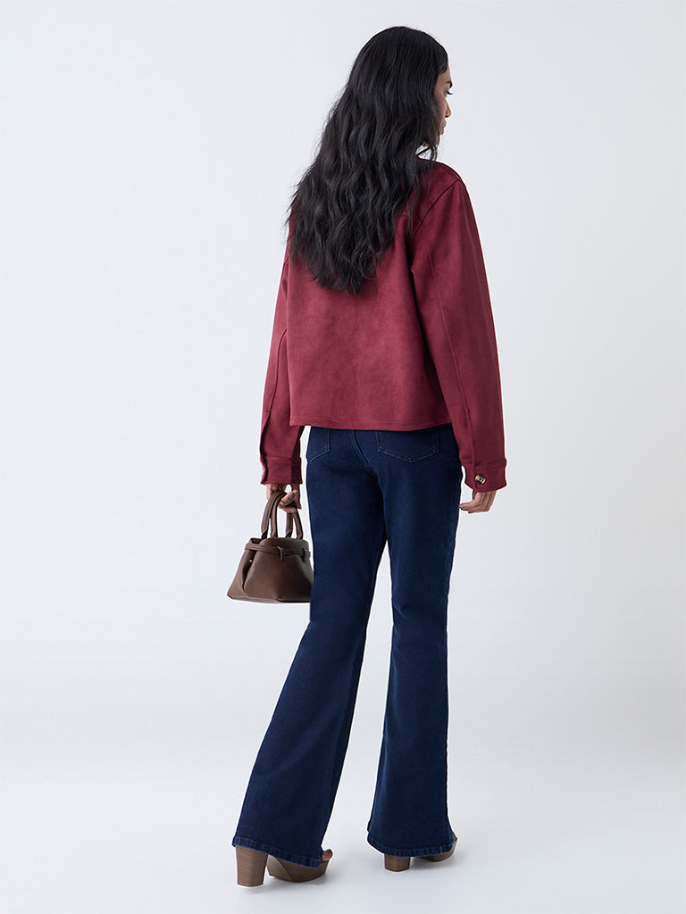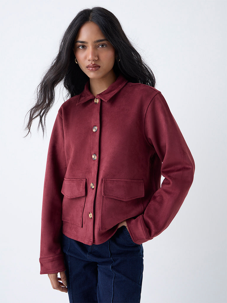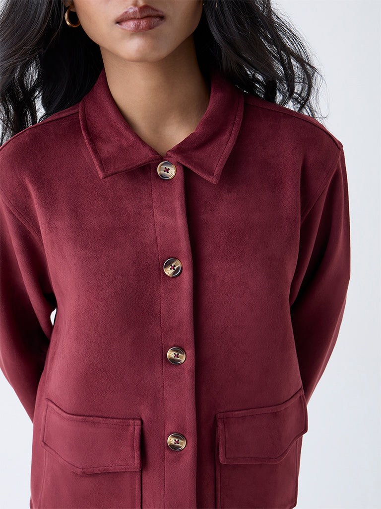 LOV Burgundy Solid Faux Suede Jacket