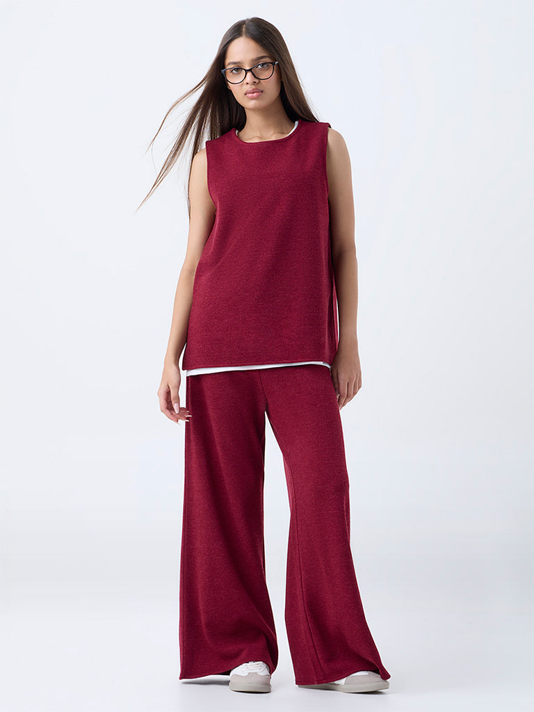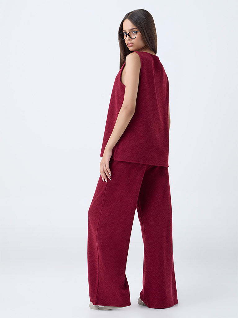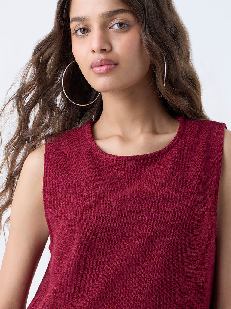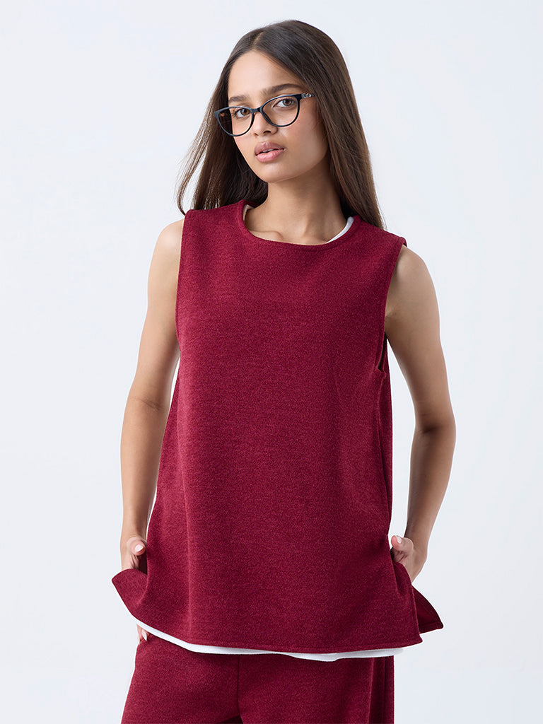 A timeless staple with a modern touch. this burgundy top from LOV features a round neck and a sleeveless cut for a versatile look. Crafted from premium fabric. it’s elevated with subtle contrast detailing that adds a hint of quiet style to your everyday rotation.