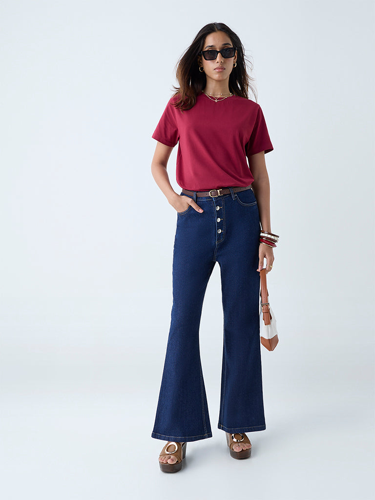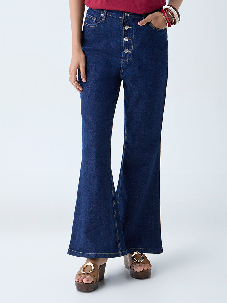 These dark blue bootcut jeans from LOV are a timeless addition to your denim rotation. Made from a structured cotton-blend fabric. they feature a buttoned waist. belt loops. and a zipper fly. The classic five-pocket design completes the look with functionality.