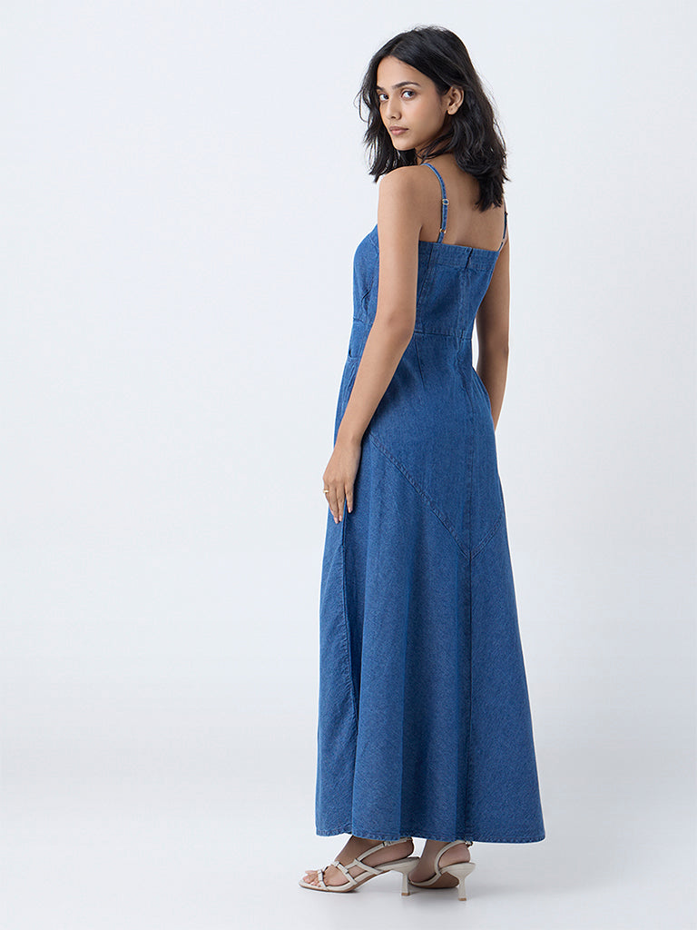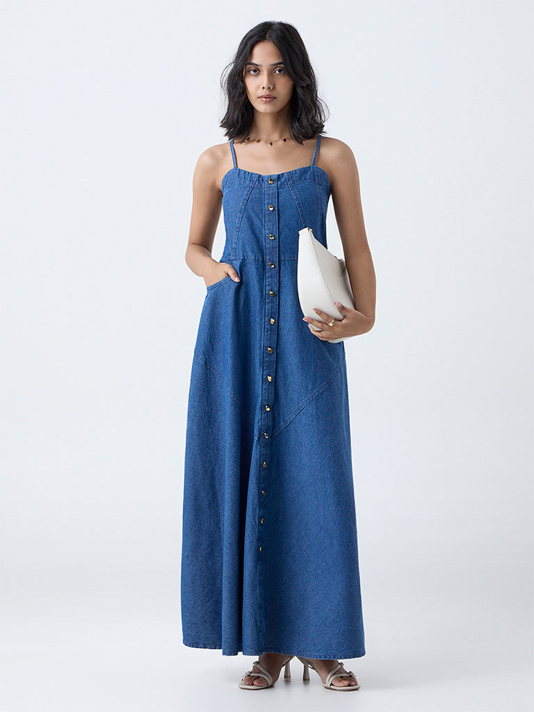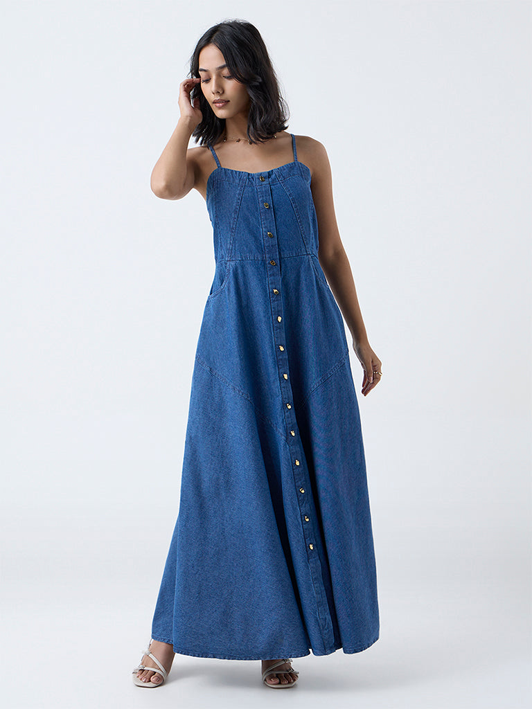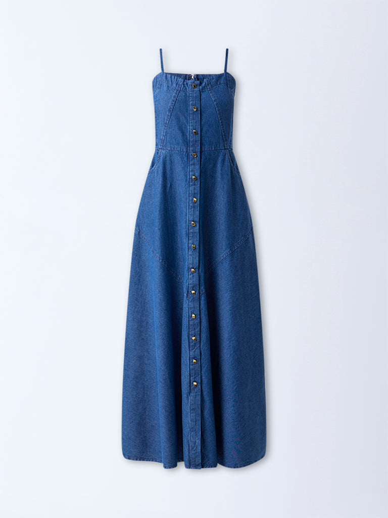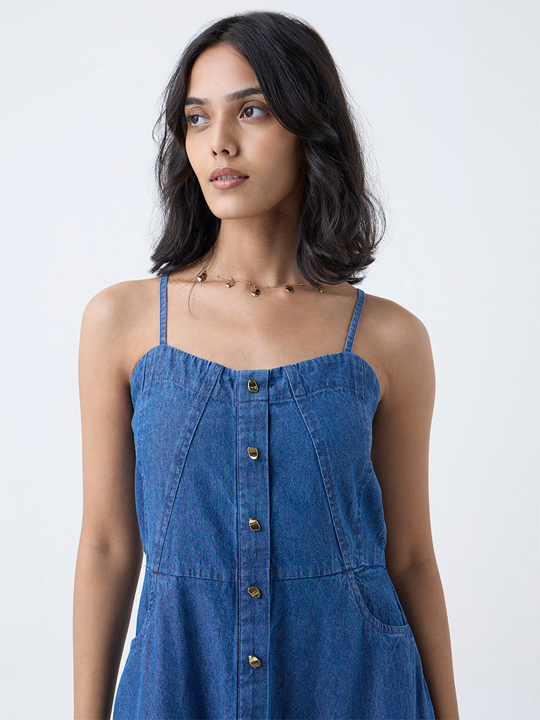 LOV Dark Blue Denim A-Line Dress