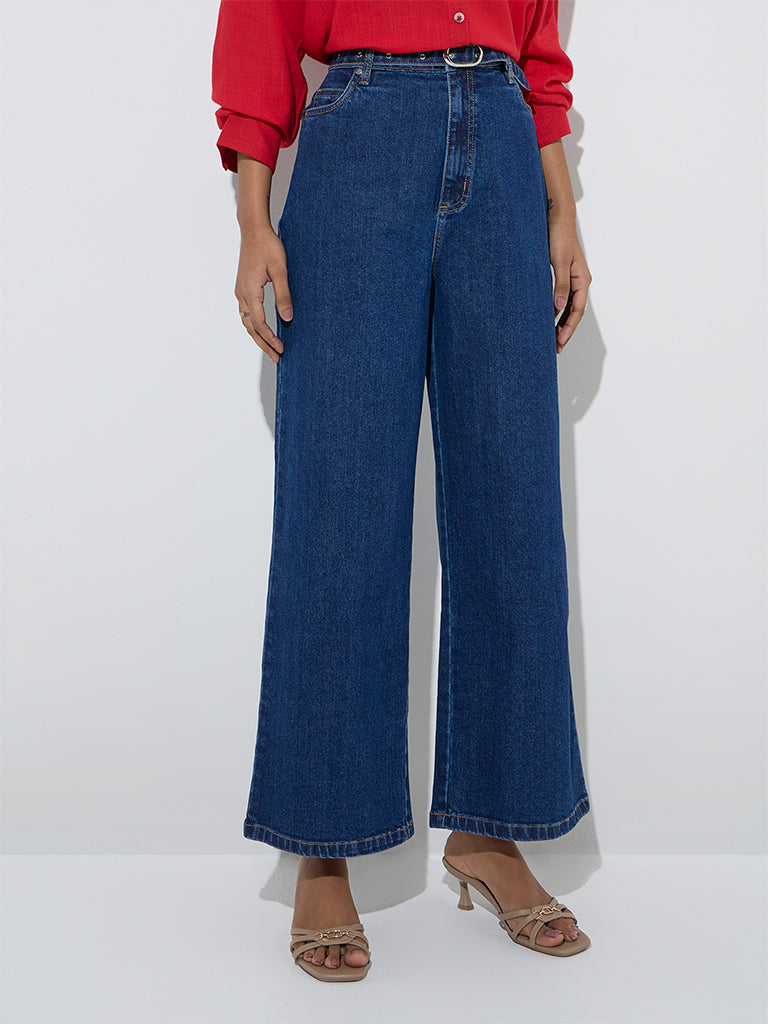 LOV Dark Blue Wide-Leg High-Rise Jeans