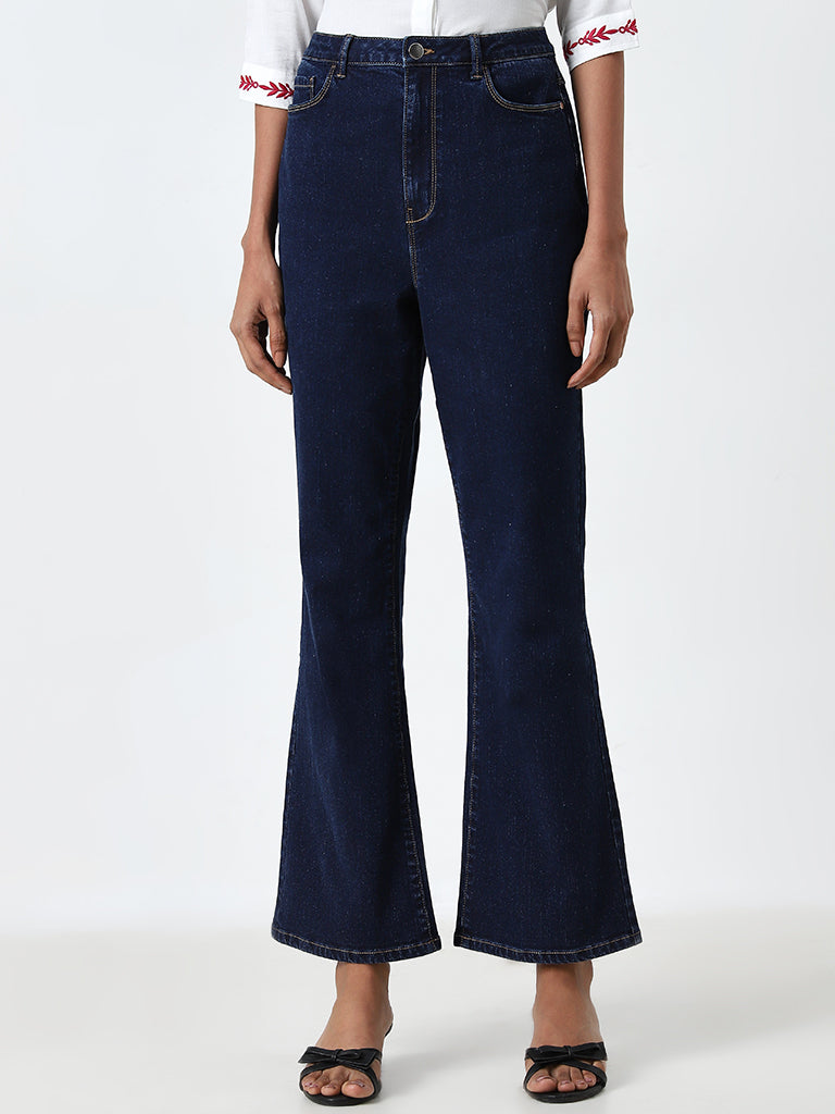 LOV Dark Blue Wide-Leg High-Rise Jeans