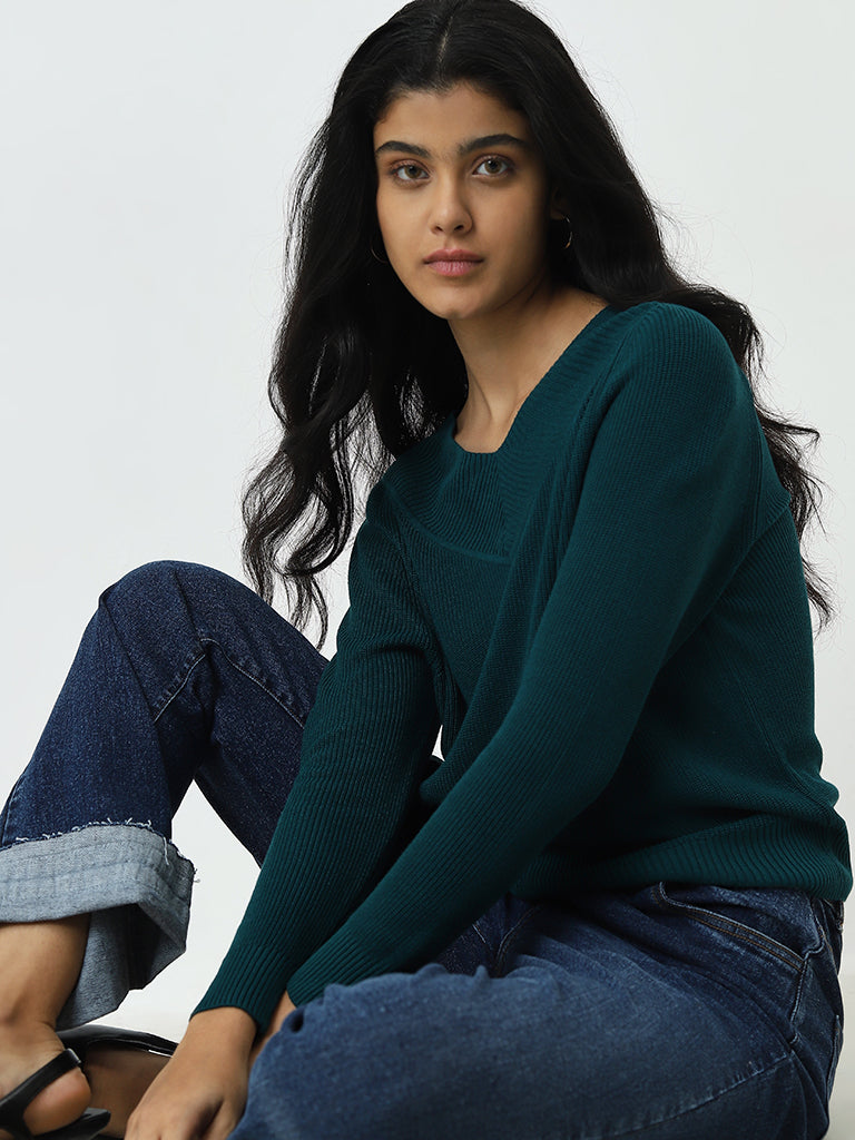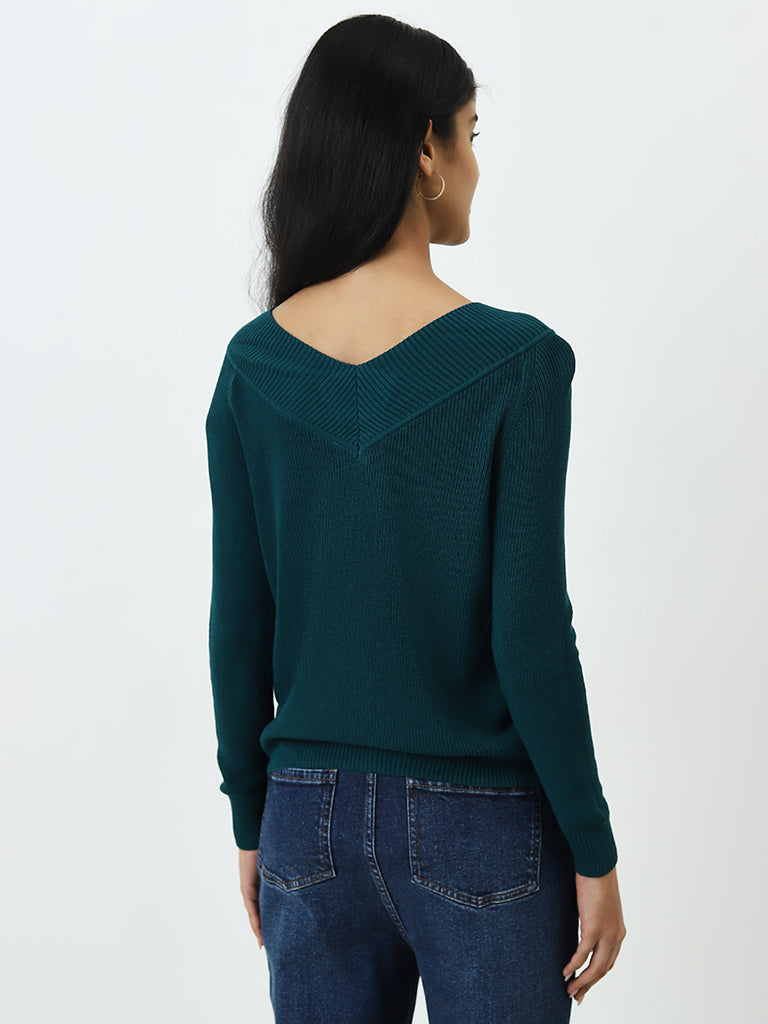 Featuring a ribbed design. this chic sweater by LOV comes in a dark green hue. It is made from a cosy material and is complete with a v-neckline and full sleeves.
