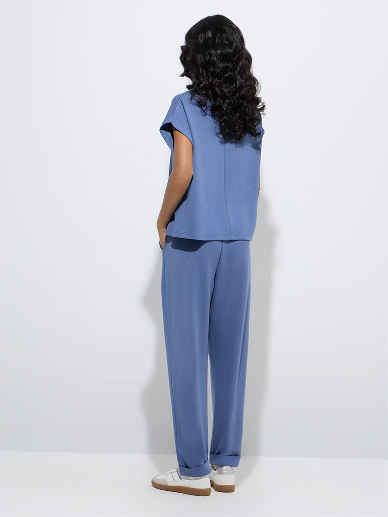 LOV Dusty Blue Solid High-Rise Pants