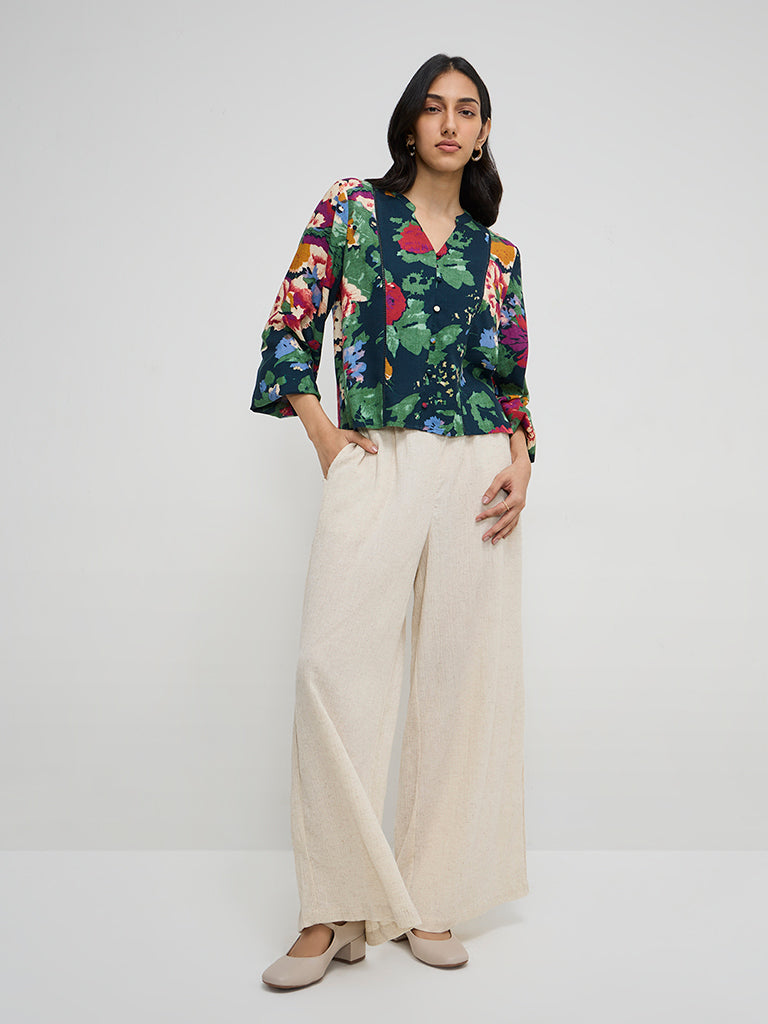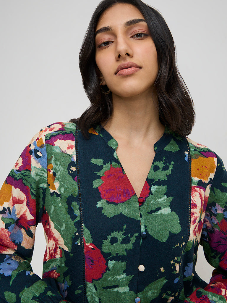 LOV Green Floral Printed Blouse
