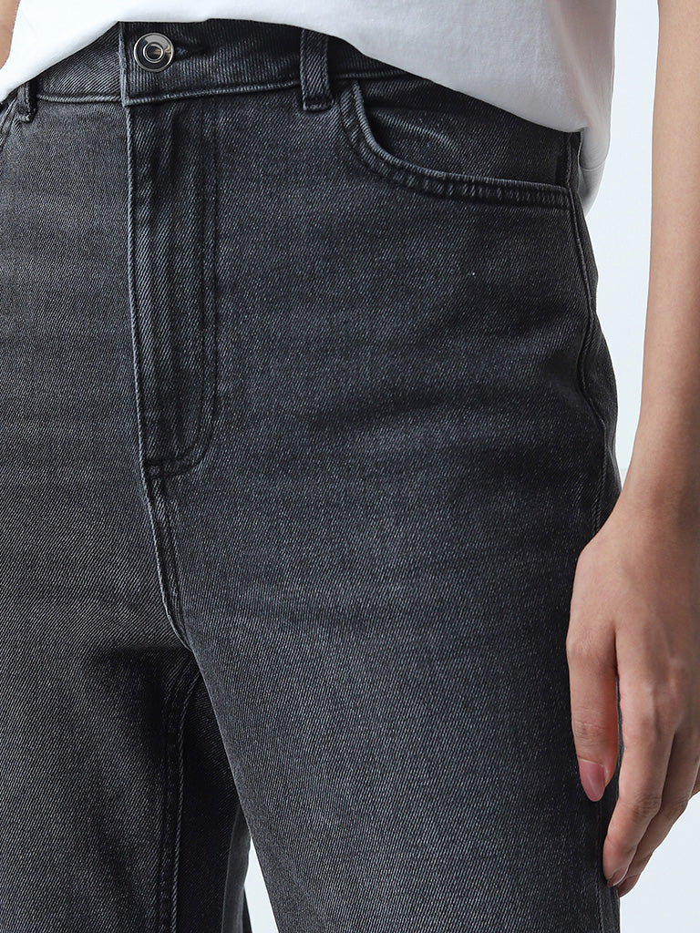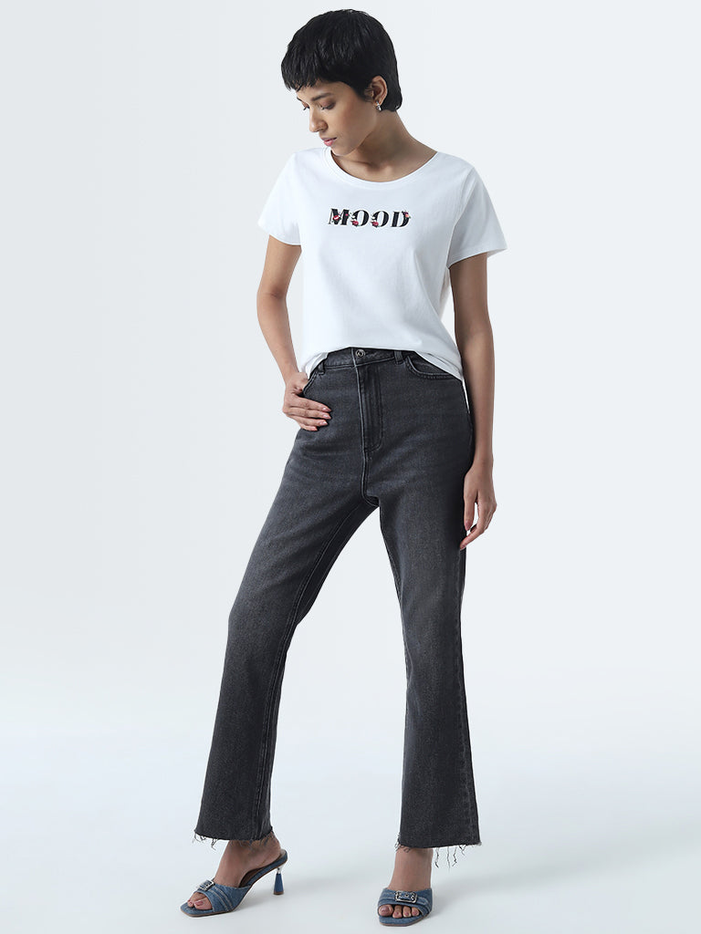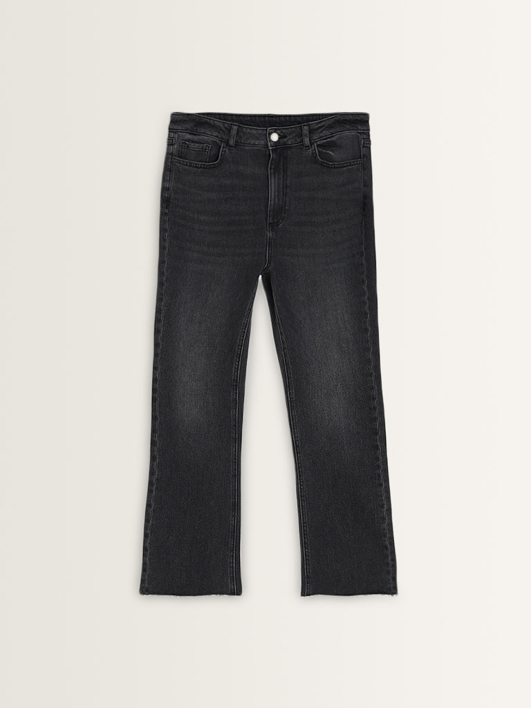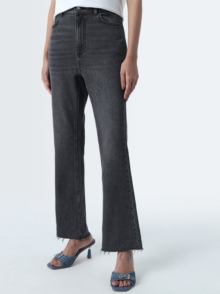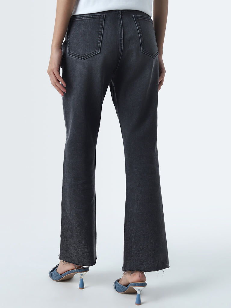 These grey jeans from LOV are crafted from sturdy denim fabric in a bootcut silhouette. Designed with a high-rise fit. they are complete with an elasticated waistband. button-zipper fly. belt loops and multiple pockets.
