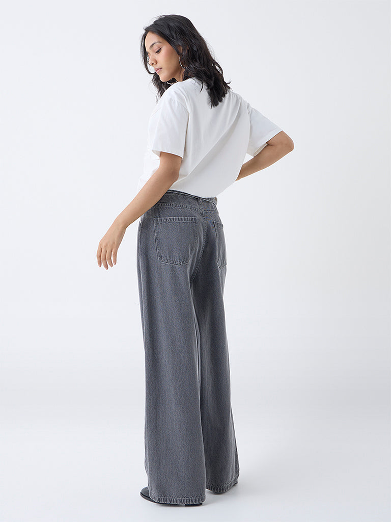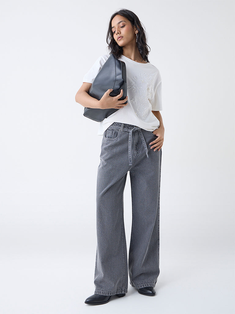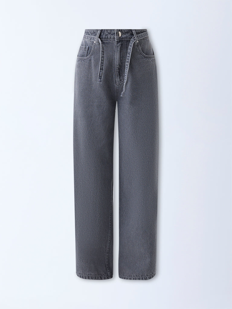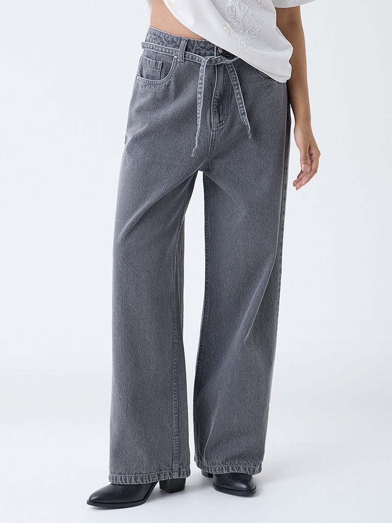LOV Grey Wide-Leg High-Rise Jeans with Belt