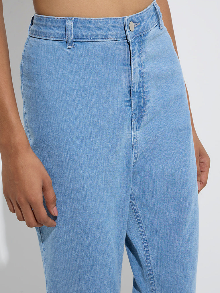 These light blue jeans from LOV are fashioned in a flared silhouette. Made from a cotton-rich fabric with a hint of stretch. the high-rise pair is fitted with an elasticated waistband. button-zipper fly. belt loops. and multiple pockets.