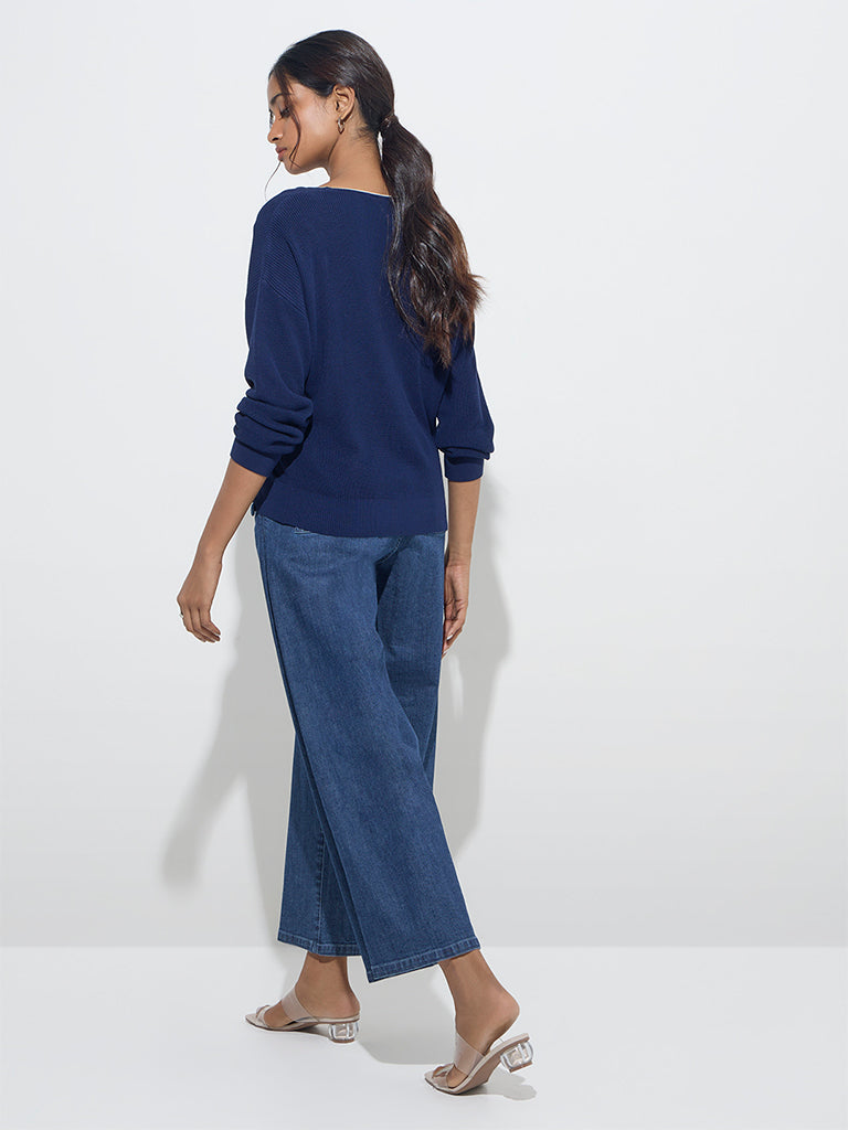 LOV Navy Ribbed-Textured Top