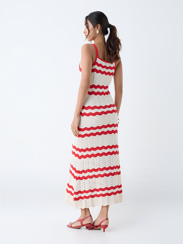 LOV Off-White Crochet Knit Cotton-Blend Straight Dress