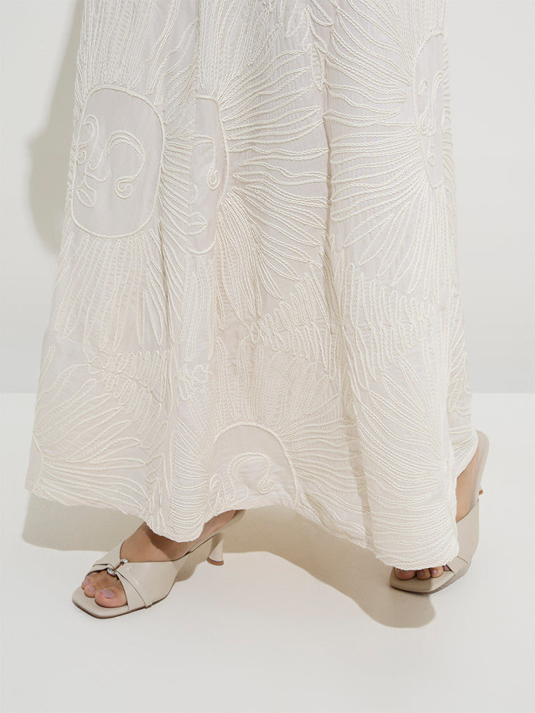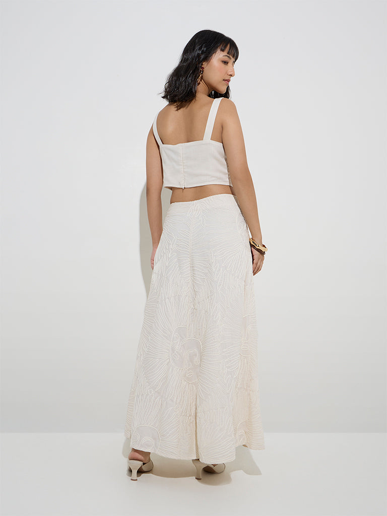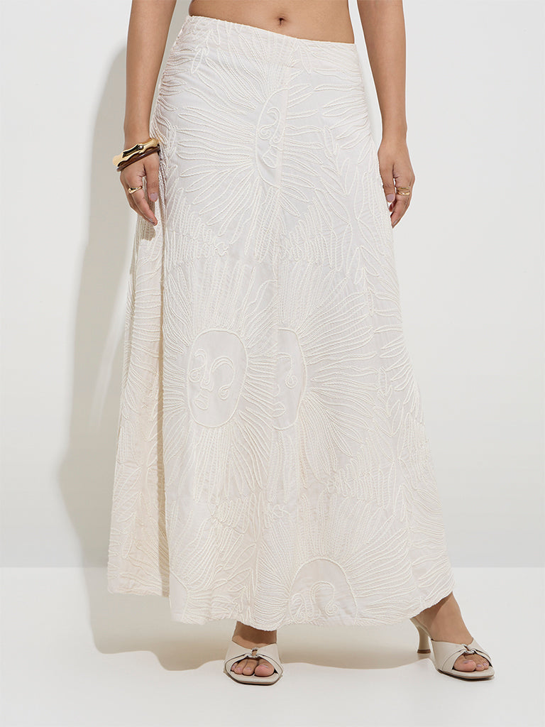LOV launches this off-white skirt. showcasing sun embroidery throughout for a playful touch. Spun from a breathable fabric. it features an elasticated waistband to ensure a snug and comfortable fit.