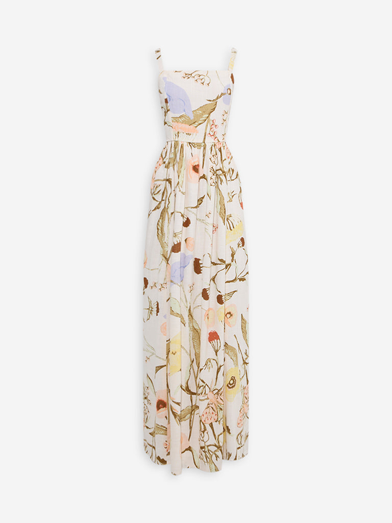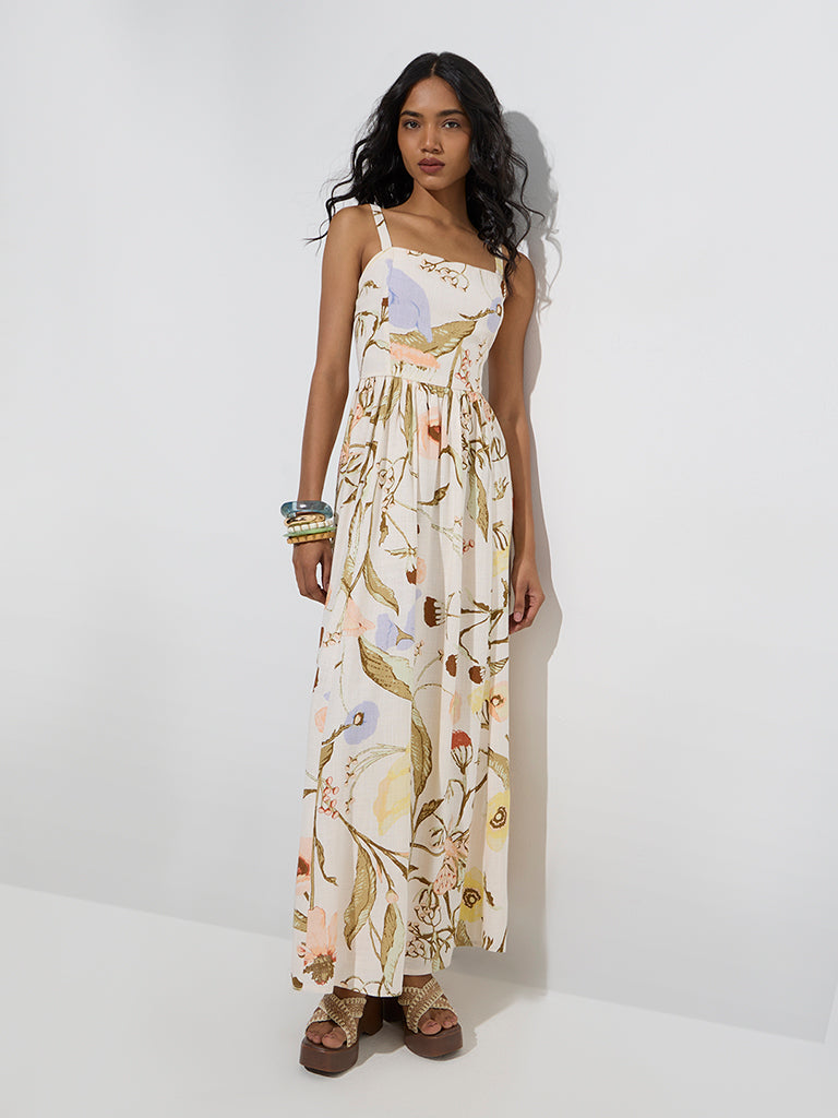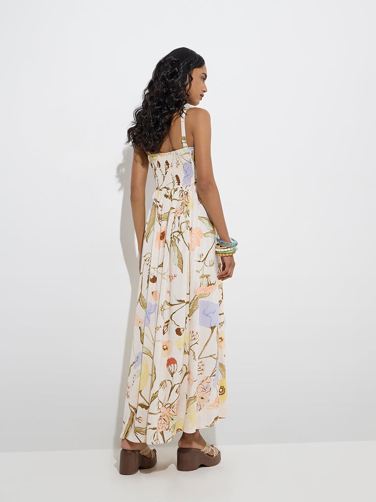 Infused with natural charm. this off-white dress from LOV is a stunning choice for your next daytime affair. Its luxurious linen-blend fabrication and captivating nature-inspired prints offer sophisticated comfort. Details like the square neck. adjustable straps. and flexible smocked back ensure a flawless fit and feel.