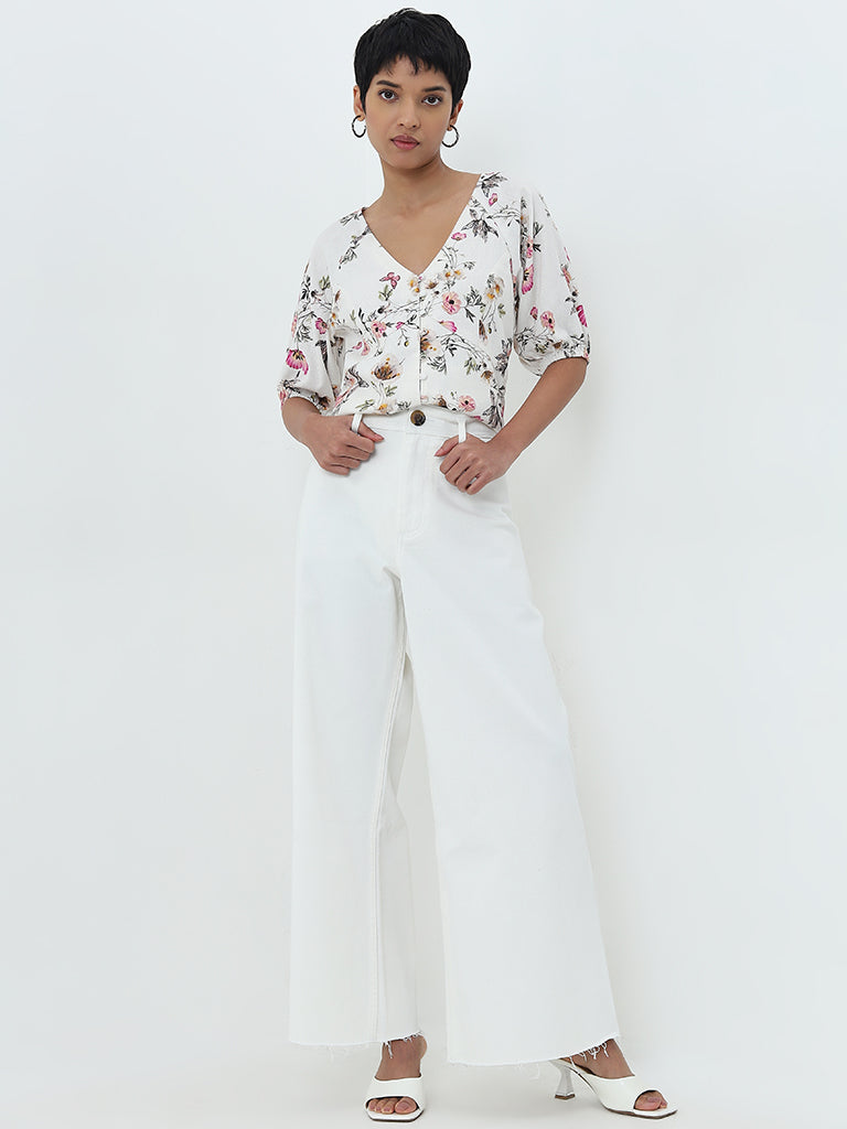 LOV Off-White Wide-Leg High-Rise Jeans