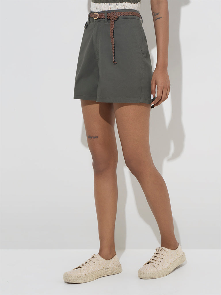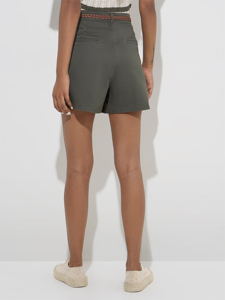 LOV Olive High-Rise Cotton-Blend Shorts with Belt
