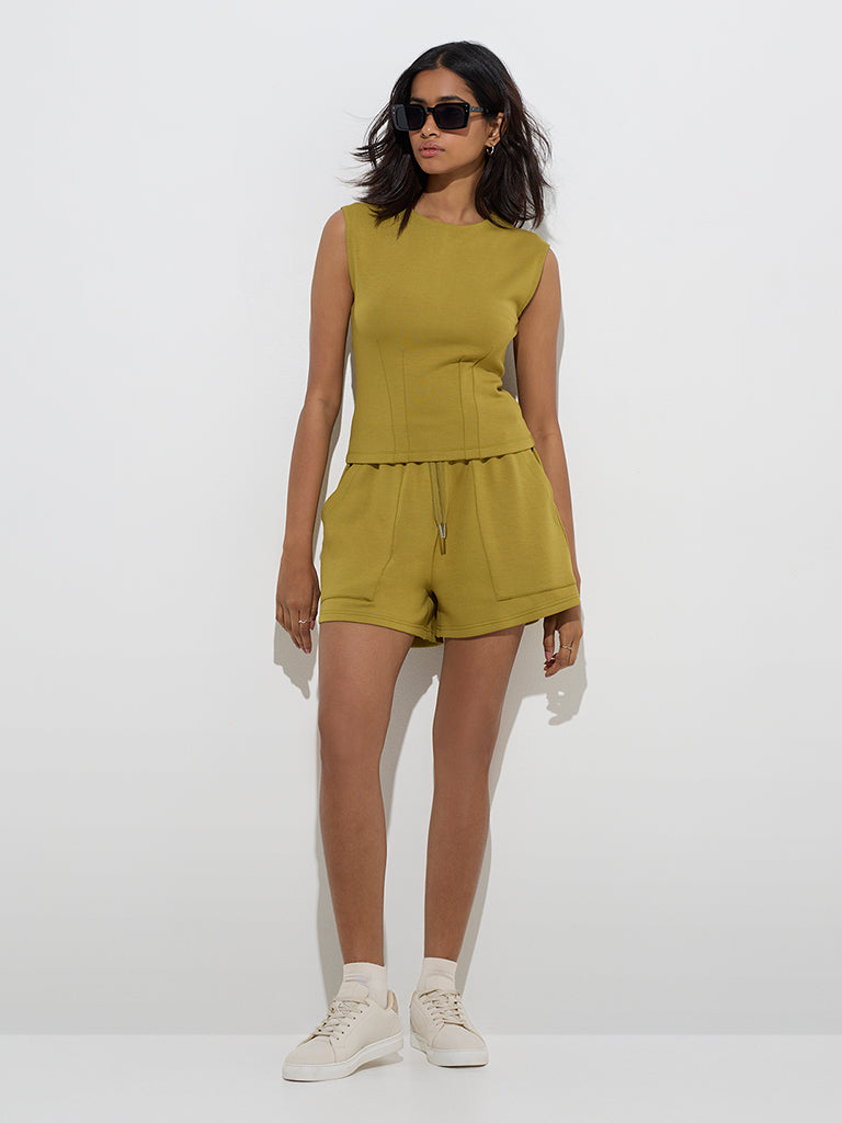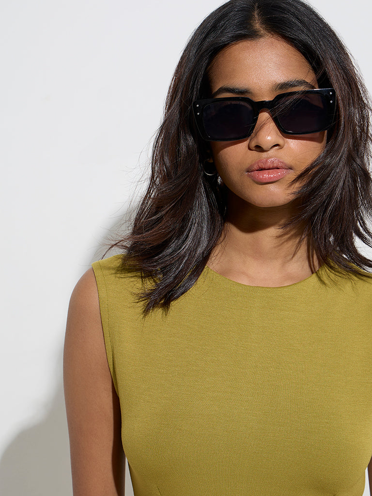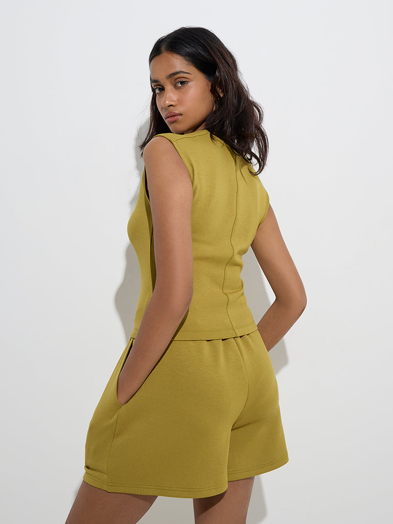 LOV presents this olive top. featuring a classic crew neck and a sleek sleeveless cut. Crafted from a premium fabric. it offers a soft. breathable feel for all-day comfort.