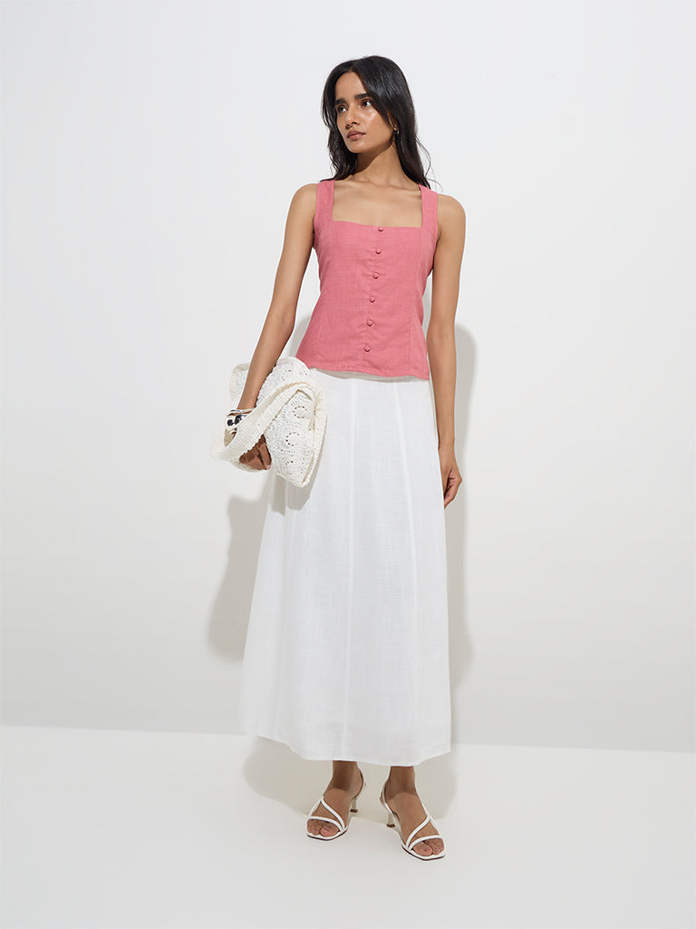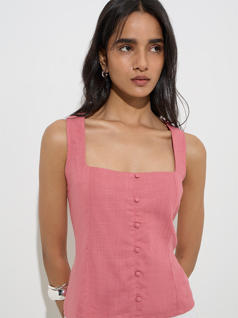 Refresh your summer style with this pink top from LOV. Constructed from a sumptuous linen-blend fabric. it features a square neck and a sleeveless cut for a breezy silhouette.