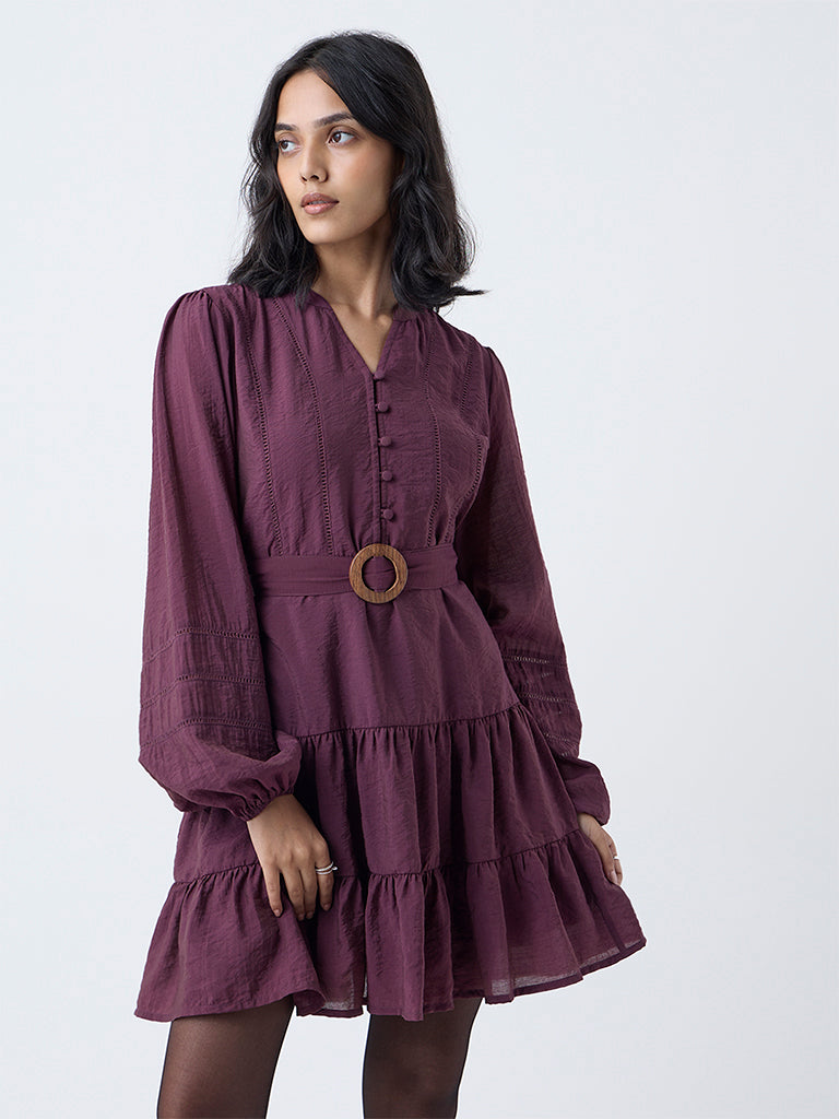 Be the first to review “LOV Plum Solid Tiered Dress with Belt”