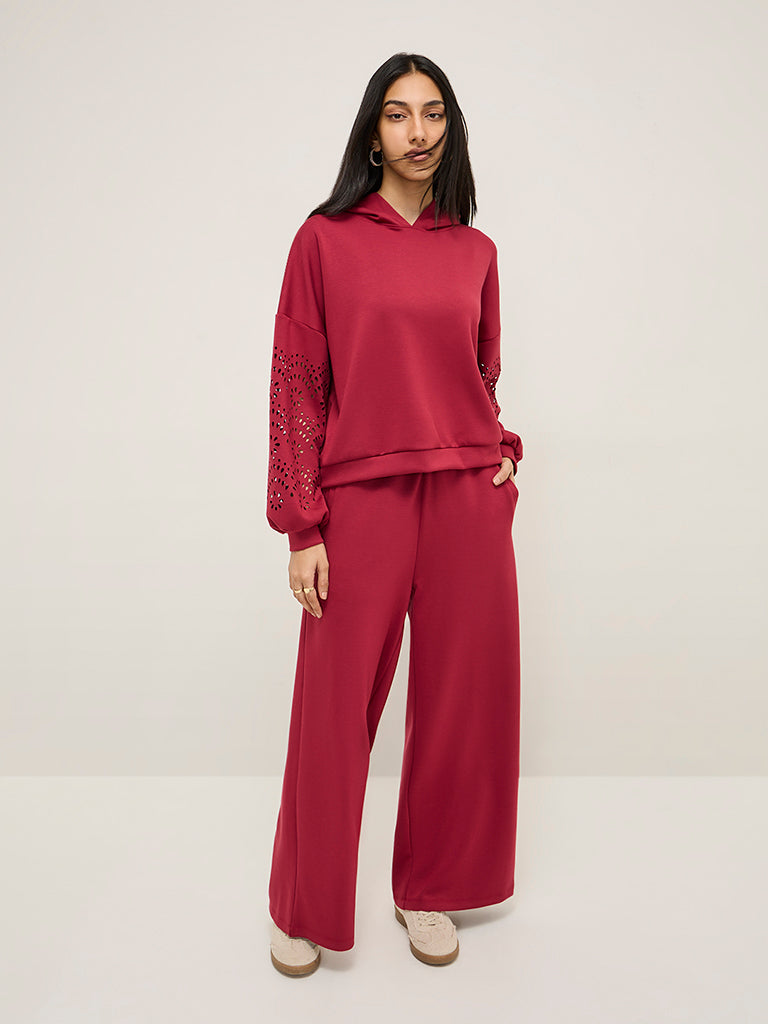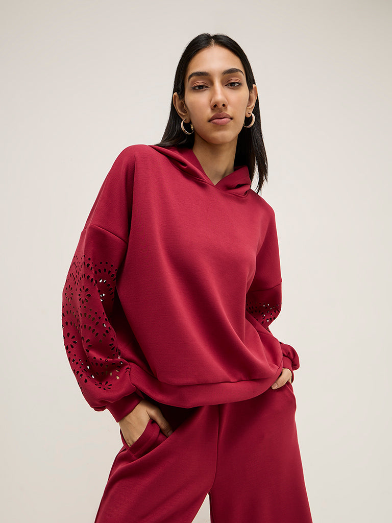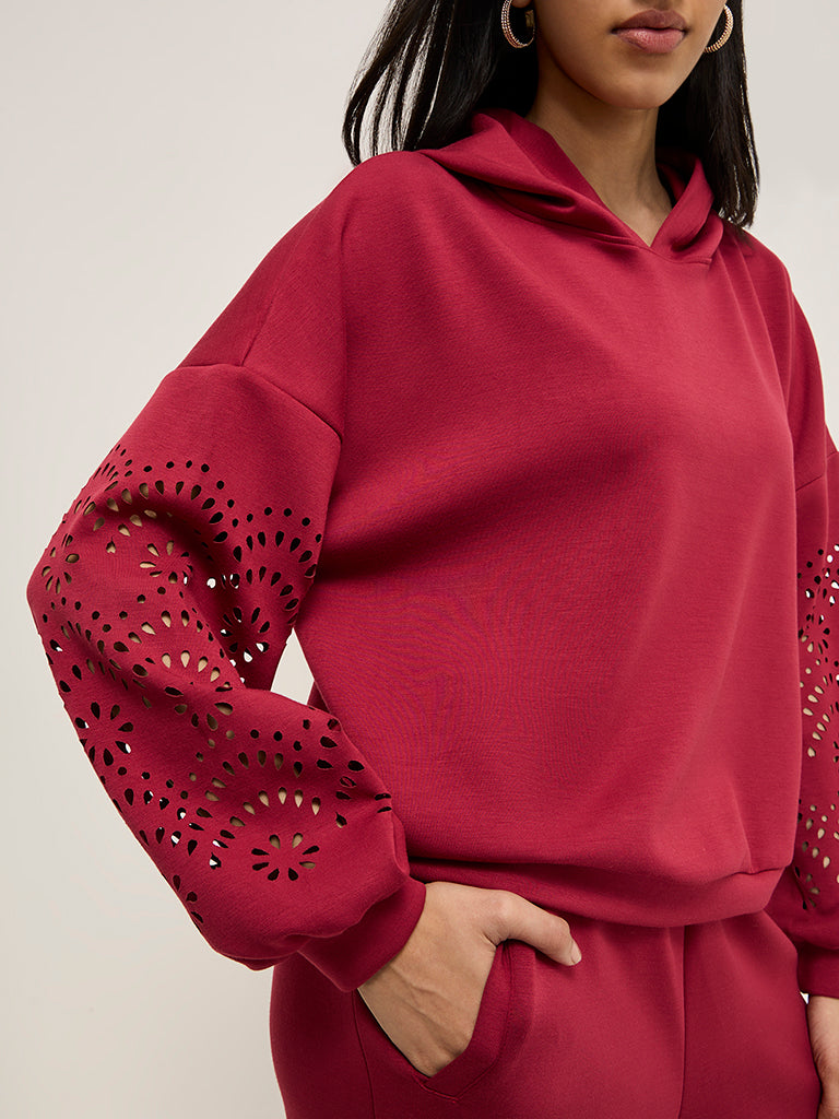 This red hoodie from LOV showcases cut-out detailing on the dropped sleeves. Offering sumptuous comfort. the hooded garment features a breathable composition.