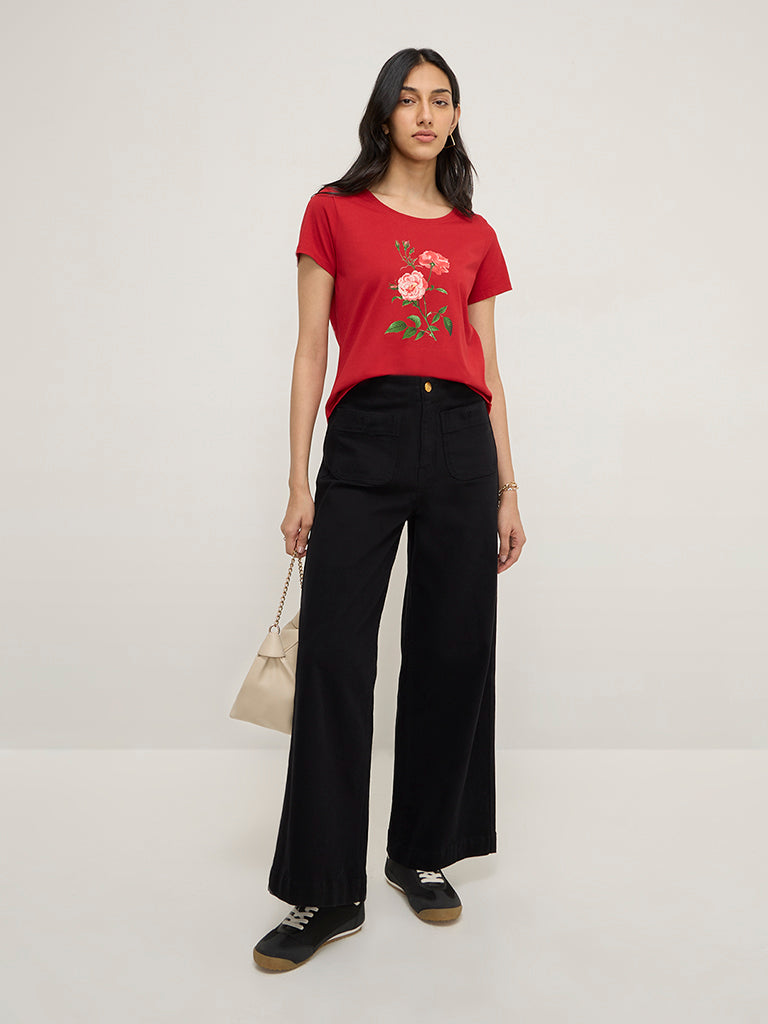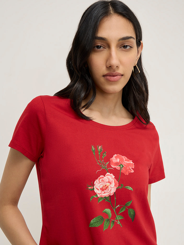 Be the first to review “LOV Red Floral Pattern Cotton T-Shirt”