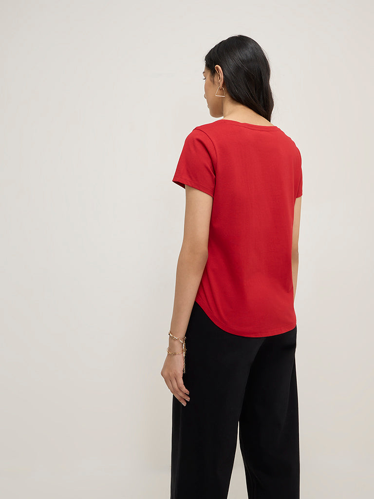 Decked with floral prints. this red t-shirt from LOV features a scoop neck and short sleeves. Its lightweight build ensures easy comfort.