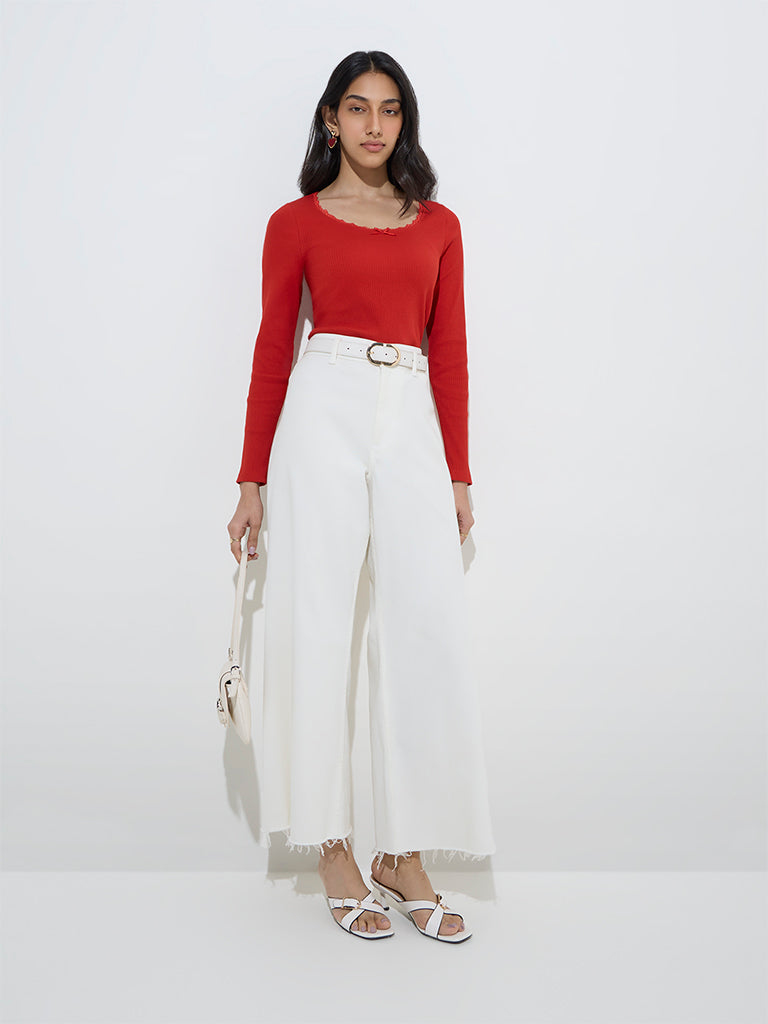 Be the first to review “LOV Red Ribbed-Textured Cotton-Blend Top”