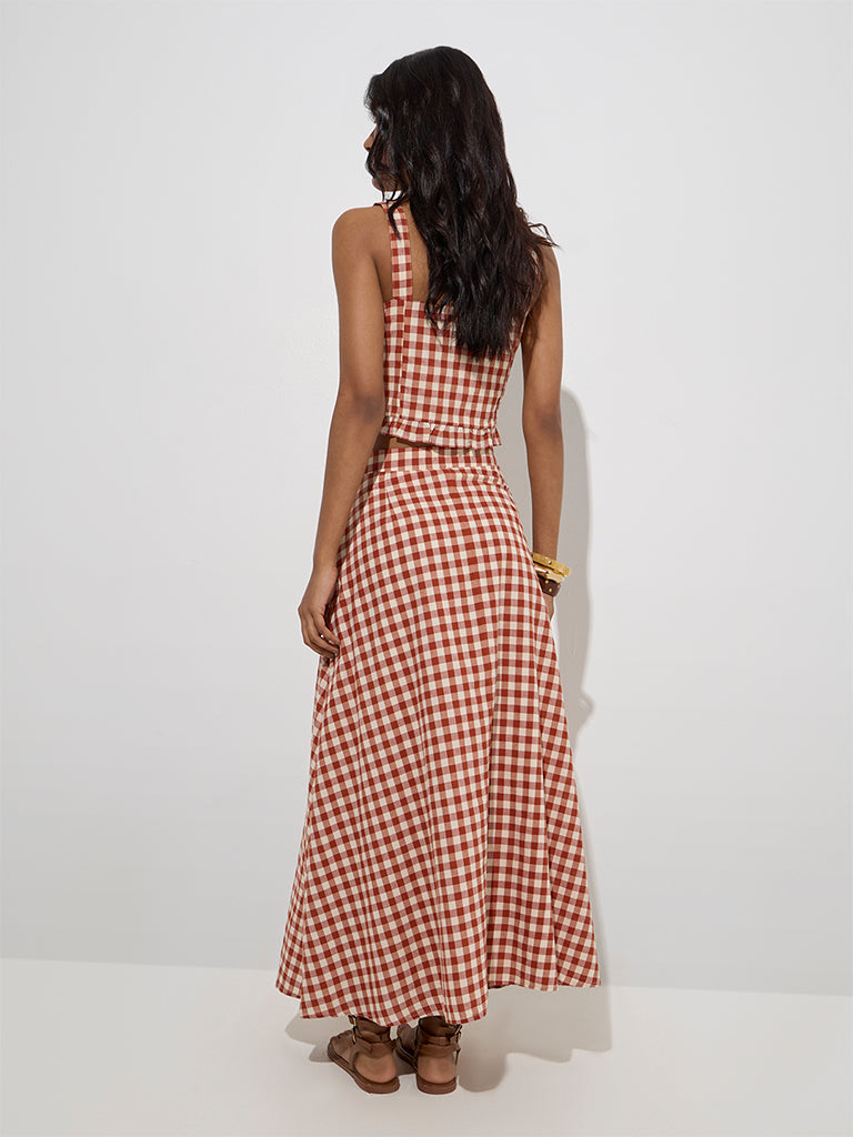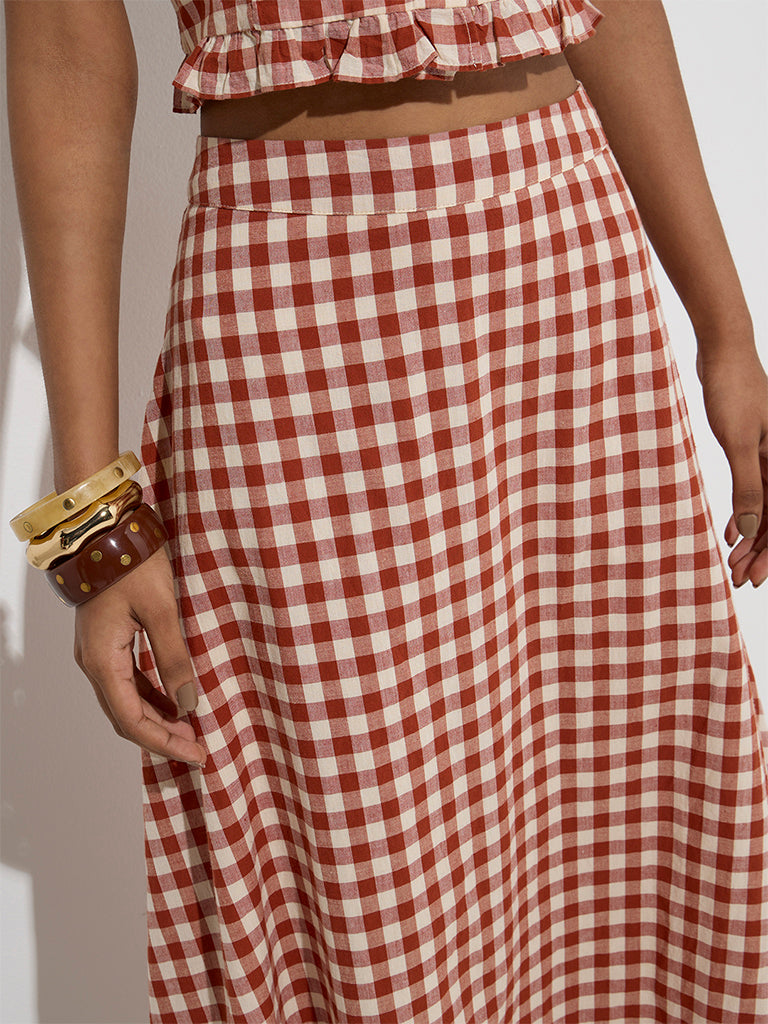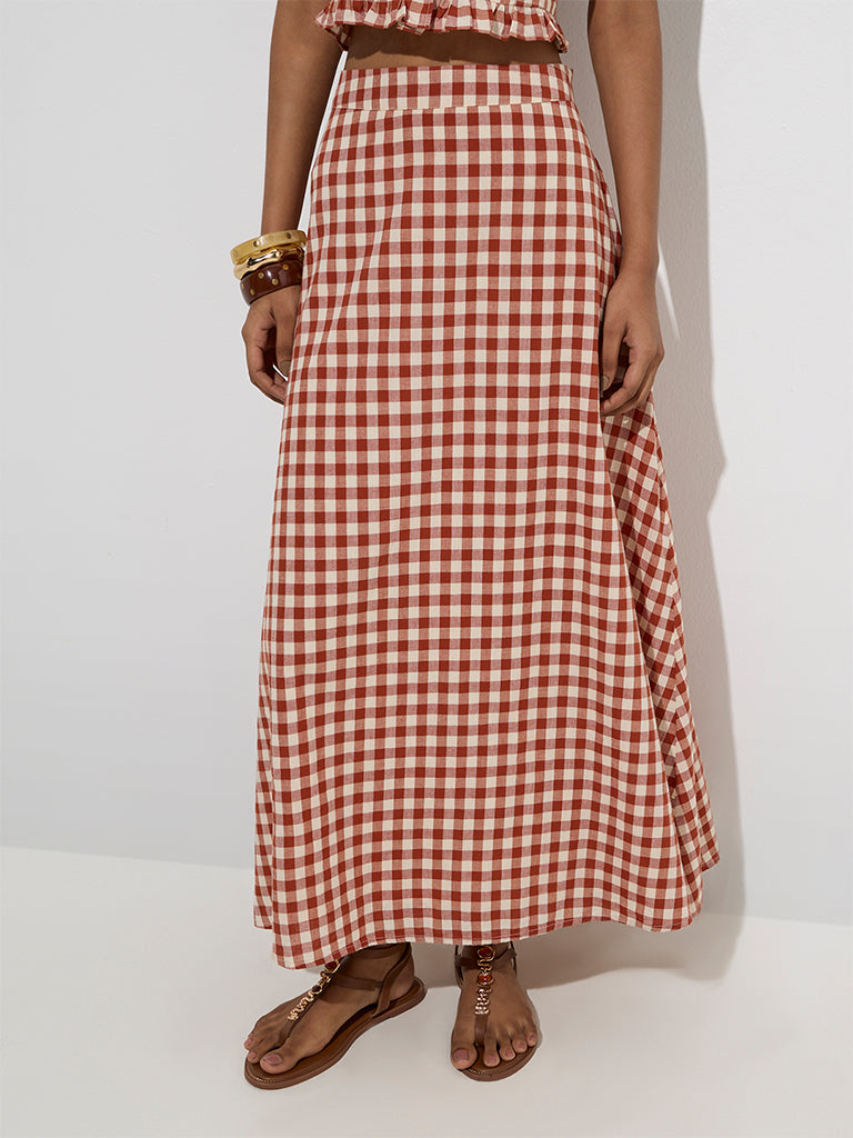 LOV Rust Gingham Checkered High-Rise Cotton Skirt