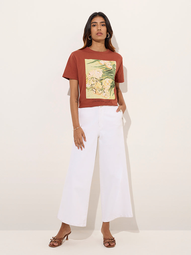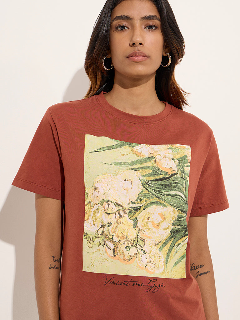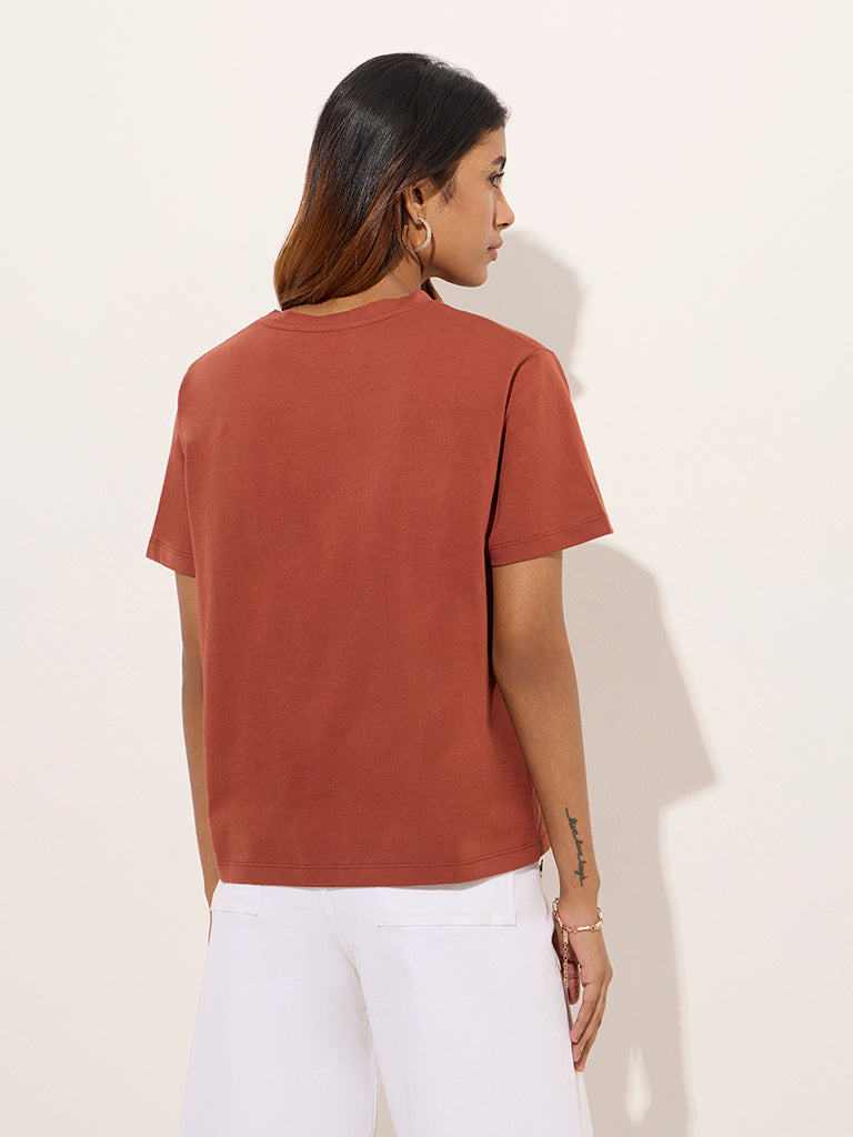 LOV Rust Printed Cotton T-Shirt