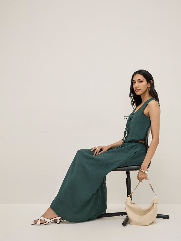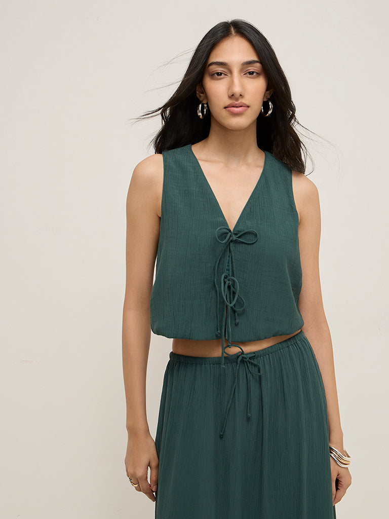 LOV Teal Knot-Detailed Textured Cotton Top