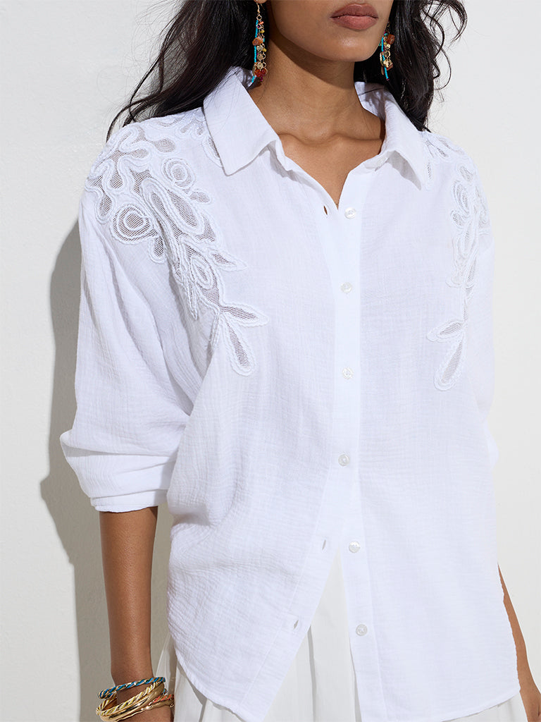 Be the first to review “LOV White Floral Embroidered Cotton Shirt”