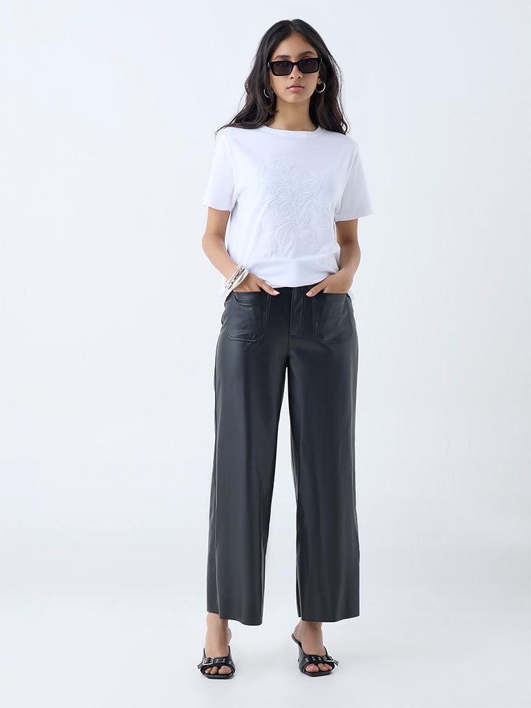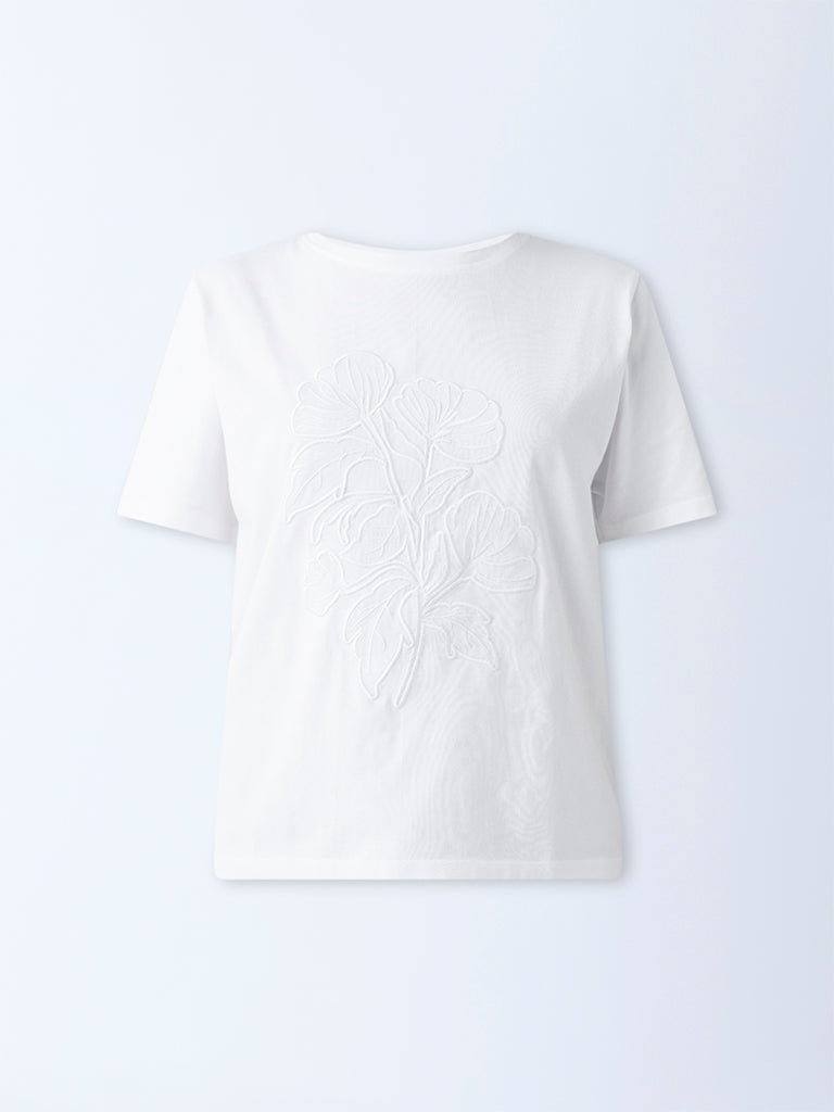 LOV White Floral Embroidered Cotton T-Shirt