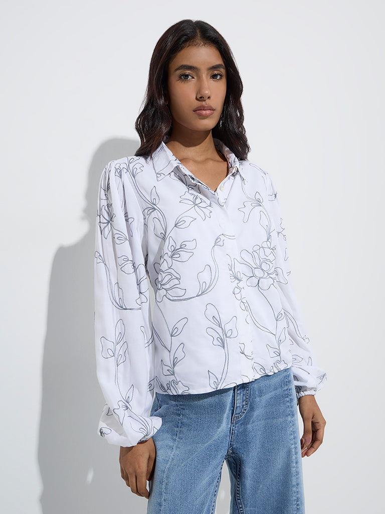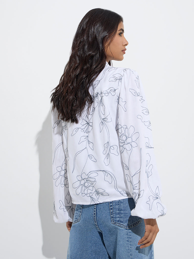 This white shirt from LOV is decorated with exquisite floral embroidery for an elegant touch. Spun from a breathable fabric. it features a classic collar. a button placket. and voluminous balloon sleeves for a refined. airy silhouette.