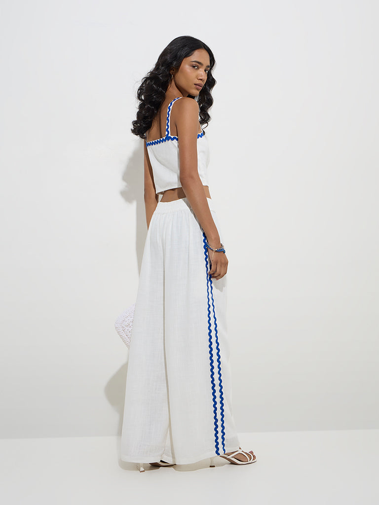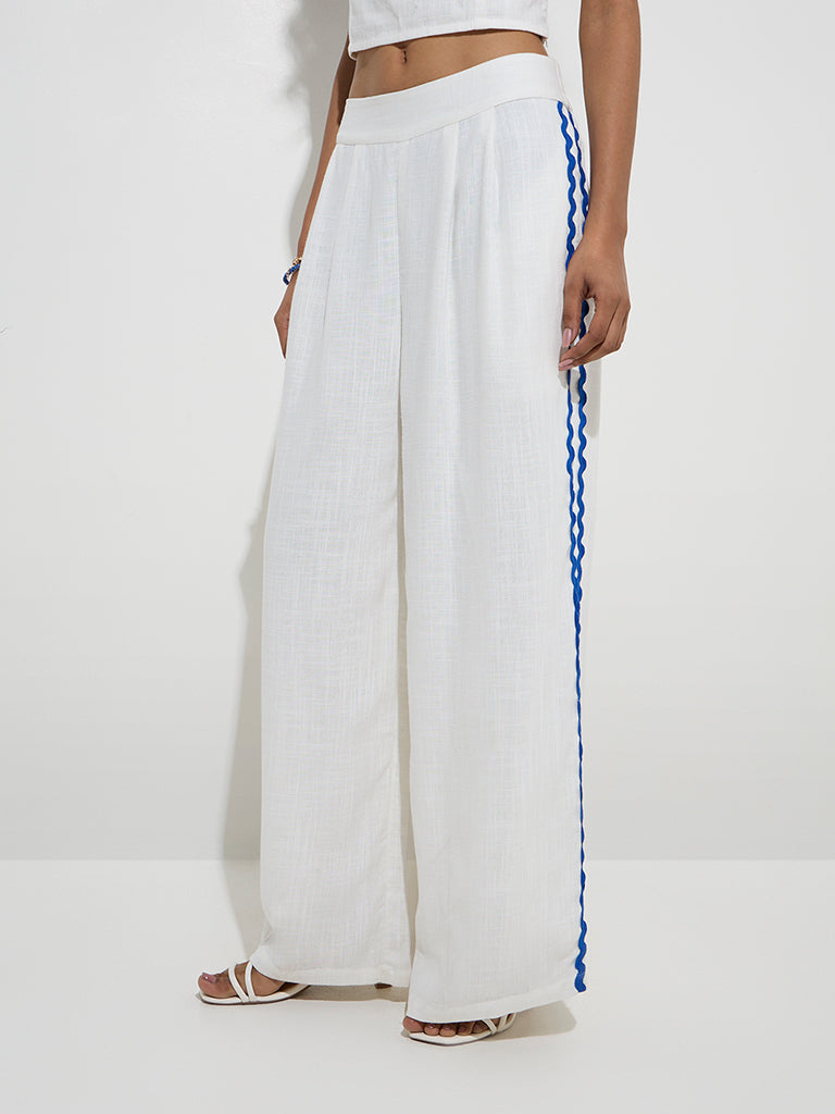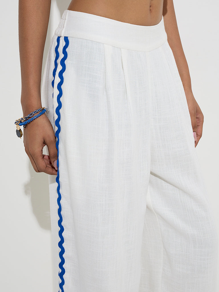 Highlighting scalloped lace panels on the sides for a delicate touch. these white pants from LOV are milled from a sumptuous linen-blend fabric. Designed with an elasticized waist for a flexible fit. they can be paired with a coordinating top or styled on their own for a chic look.