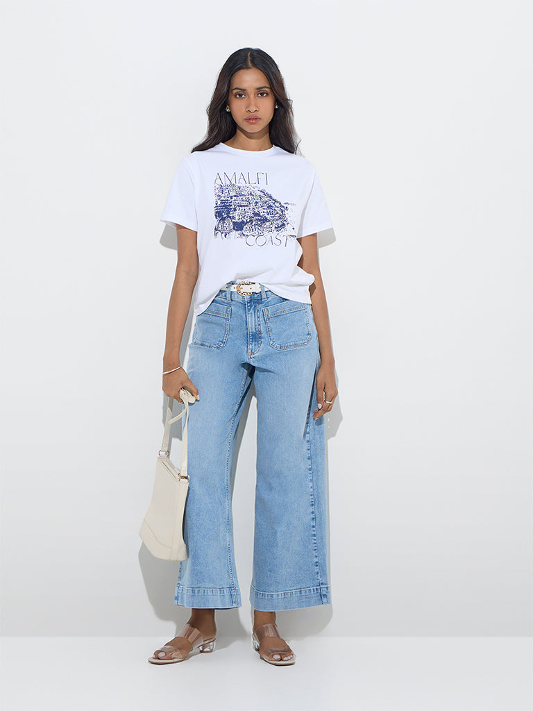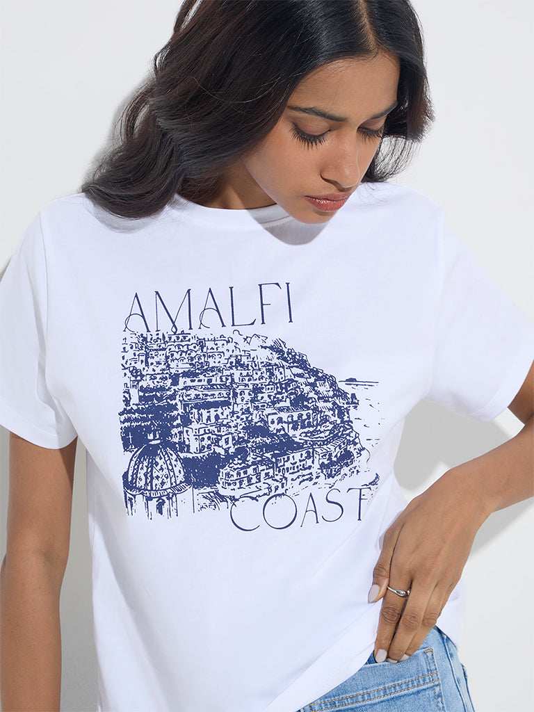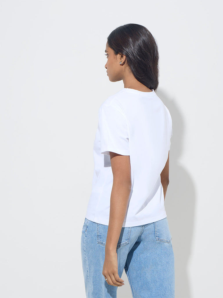 LOV presents this white t-shirt showcasing a female motif. It is crafted from pure-cotton and includes a round neck with half sleeves.
