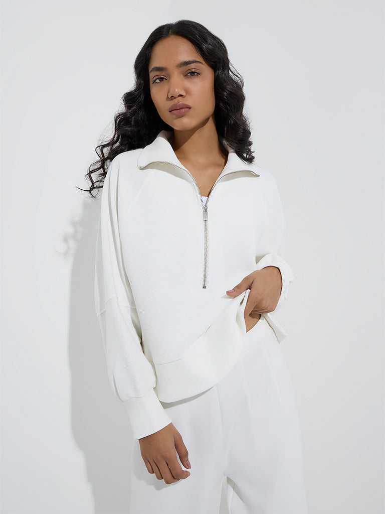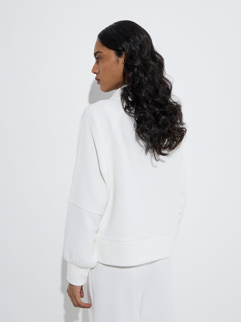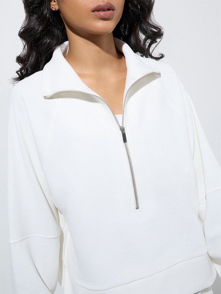 LOV White Ribbed Cotton-Blend Quarter-Zip Sweatshirt