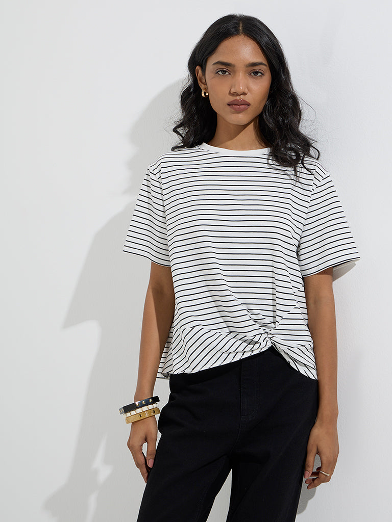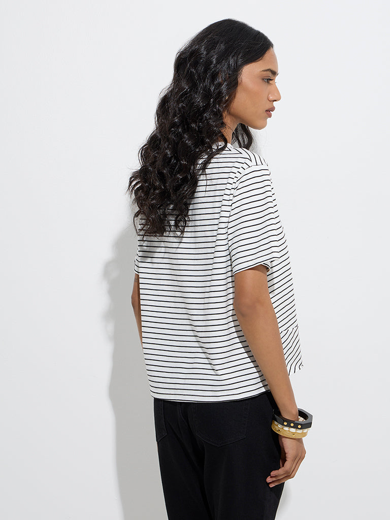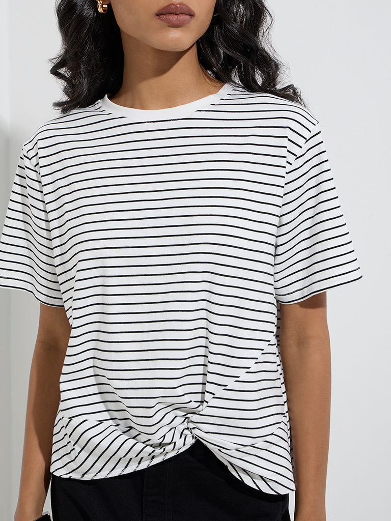 LOV White Stripe Printed Cotton-Blend T-Shirt