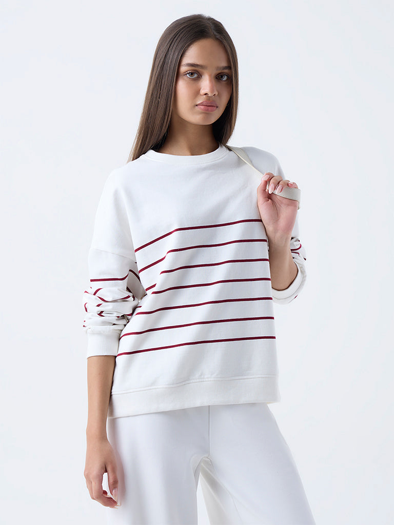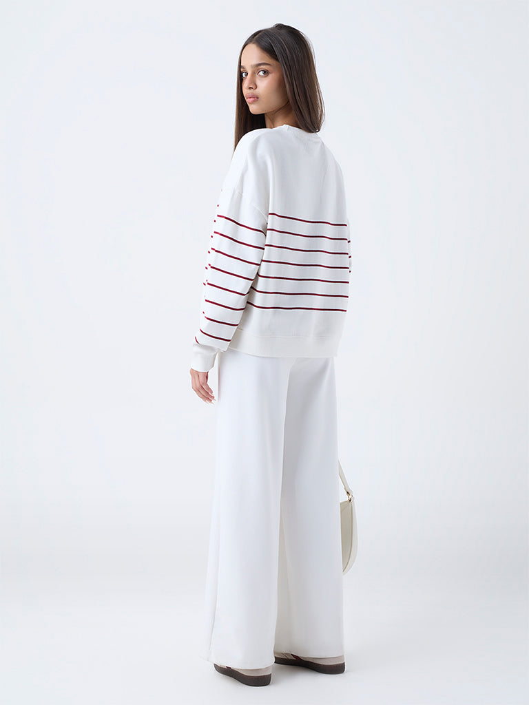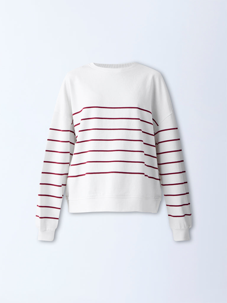 LOV White Striped Cotton Sweatshirt